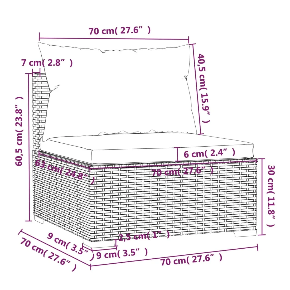vidaXLDétendez-vous et profitez de vos loisirs sur ce salon de jardin en résine tressé très tendance ! C'est un excellent choix pour vous permettre de faire une pause de votre vie trépidante. Cadre robuste et léger : cet ensemble de meubles de patio est doté d'un cadre solide en acier enduit de poudre et de pieds en plastique chromé, ce qui est très durable. Grâce à sa construction légère, l'ensemble de canapés est facile à déplacer.Matériau résistant à l'eau : fabriqué dans un matériau résistant à l'eau, l'ensemble de canapés de jardin peut résister à l'humidité et aux intempéries. Il peut également être facilement nettoyé avec un chiffon humide si nécessaire.Design modulaire : la conception modulaire permet de placer l'ensemble dans n'importe quelle disposition ou de le combiner avec d'autres segments modulaires pour répondre à vos besoins.Coussins confortables : les coussins bien rembourrés et amovibles offrent un confort optimal pour votre assise en plein air. Remarque :Afin de prolonger la durée de vie de votre mobilier d'extérieur, nous vous recommandons de le protéger avec une housse imperméable.