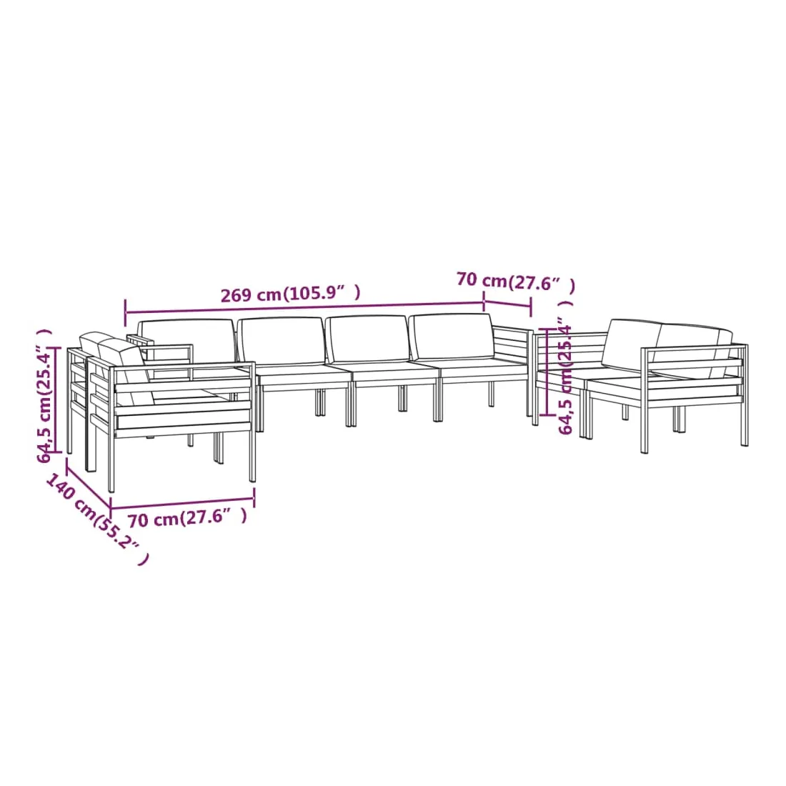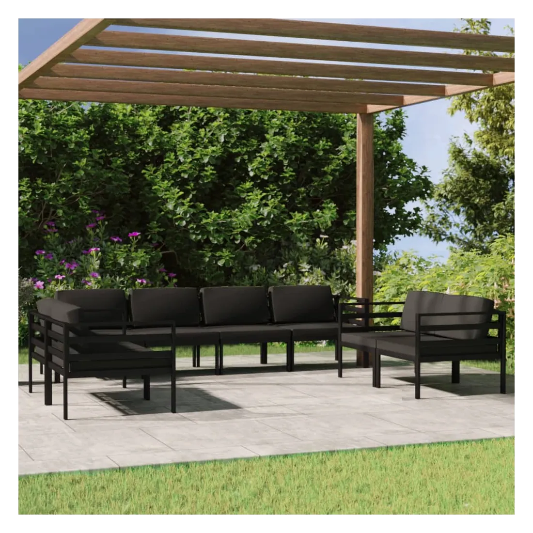Salon de jardin 8 pcs avec coussins Aluminium Anthracite