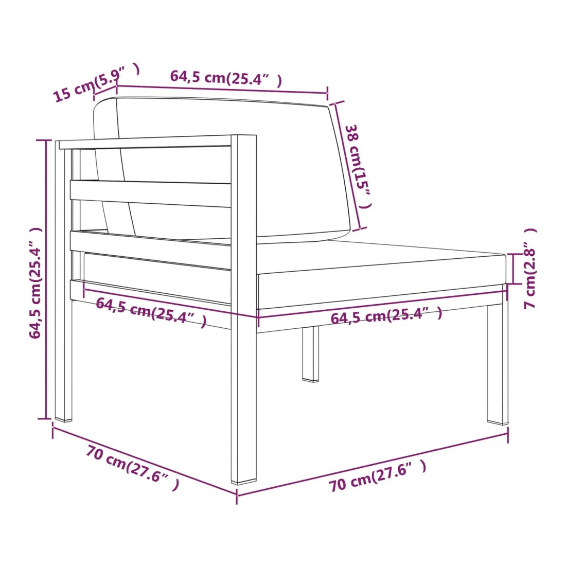 Alliant style et fonctionnalité, ce salon de jardin en aluminium vous offre un endroit parfait pour vous détendre et profiter du plus grand confort possible. Design modulaire : cet ensemble de salon de patio présente une conception modulaire qui vous permet de combiner ses sections modulaires dans différentes configurations, selon vos goûts !Matériau haut de gamme : fabriqué en aluminium, l'ensemble de salon d'extérieur est résistant aux intempéries et robuste. La construction légère facilite son déplacement.Coussins et oreillers confortables : les coussins de siège et les oreillers de dossier sont inclus pour votre confort. Remarque :Afin de prolonger la durée de vie de votre mobilier d'extérieur, nous vous recommandons de le protéger avec une housse imperméable.