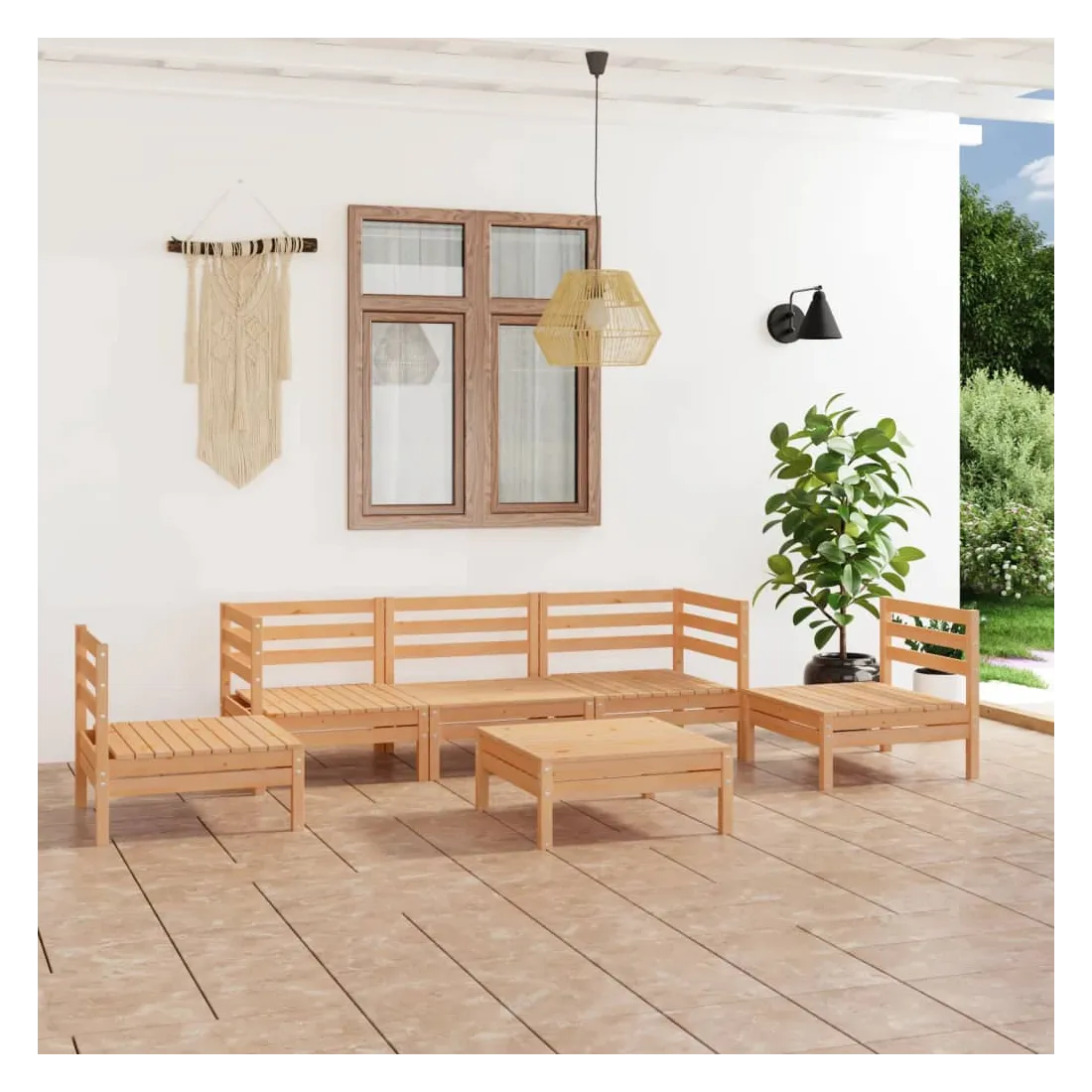 Ce salon de jardin est un excellent choix pour vous détendre et profiter du beau temps, faire une sieste ou discuter avec votre famille ou vos amis. Le salon de jardin est fait de bois de pin massif, ce qui le rend robuste et stable. Vous pouvez le combiner avec d'autres segments modulaires pour créer votre propre ensemble de salon de jardin ! Remarque : afin de prolonger la durée de vie des meubles d'extérieur, nous vous recommandons de les protéger avec une housse imperméable.