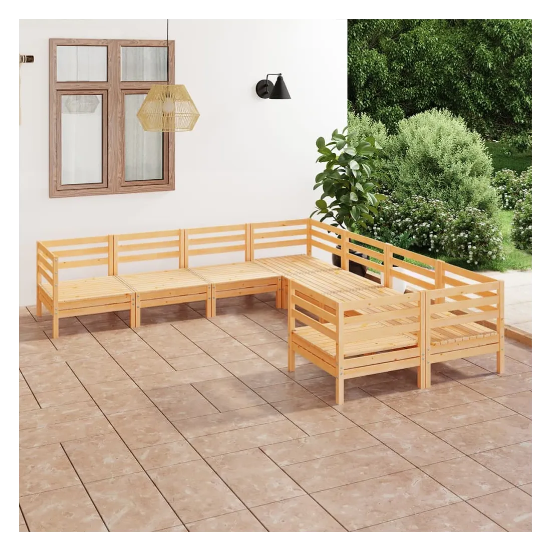 Cet ensemble de salon de jardin en bois est un choix idéal pour vous détendre, profiter du beau temps, faire une sieste ou discuter en famille ou entre amis. Avec son design intemporel de palette, l'ensemble de canapés en bois ajoute une touche de charme rustique à votre terrasse, jardin ou salon. Fabriqué en bois de pin massif, cet ensemble de mobilier d'extérieur est très durable et résistant aux intempéries. Cet ensemble de canapés a une construction solide et nécessite peu d'entretien. De plus, la conception modulaire permet également de placer l'ensemble dans n'importe quel arrangement selon vos goûts. Remarque : afin de prolonger la durée de vie des meubles d'extérieur, nous vous recommandons de les protéger avec une housse imperméable.