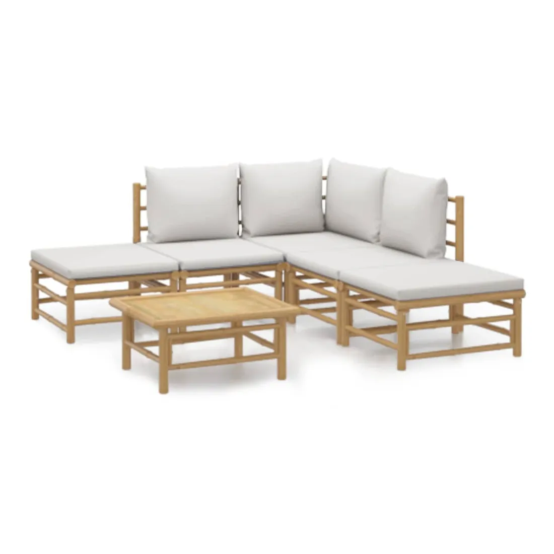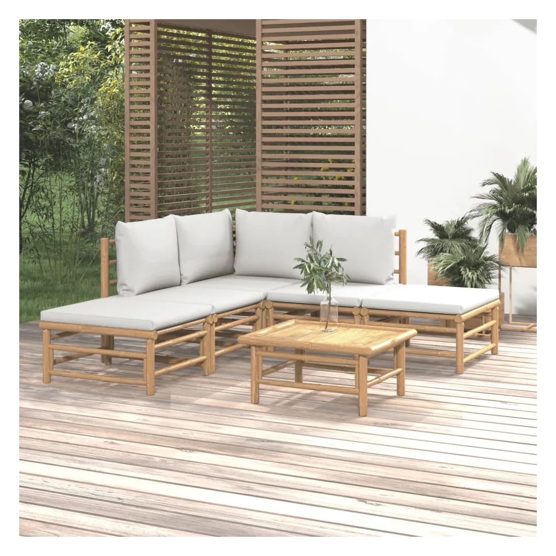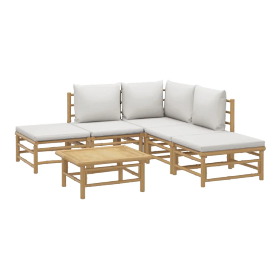 Savourez une tasse de café ou de thé par beau temps dans votre espace extérieur avec cet élégant ensemble de salon de jardin en bambou ! Matériau durable : le bambou est connu pour sa flexibilité et sa dureté. Les meubles en bambou sont une bonne option lorsque vous voulez des meubles d'extérieur solides fabriqués à partir de matériaux naturels.Expérience d'assise confortable : le dossier et l'accoudoir ajoutent un confort d'assise supplémentaire pour l'ensemble de canapé de jardin. De plus, les coussins d'assise et de dossier moelleux offrent un confort pendant votre temps d'assise.Table pratique : la table robuste est parfaite pour placer des repas, des boissons et d'autres objets décoratifs.Conception modulaire : l'ensemble de salon est flexible et facile à déplacer, vous pouvez donc le combiner avec d'autres segments modulaires dans la boutique en ligne pour créer vos propres configurations d'ensemble de salon d'extérieur ! Remarque :Pour que vos meubles d'extérieur restent beaux, nous vous recommandons de les protéger avec une housse imperméable.Bon à savoir :Pour faciliter au maximum le montage, chaque produit est livré avec des instructions.