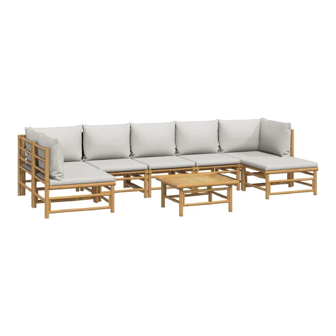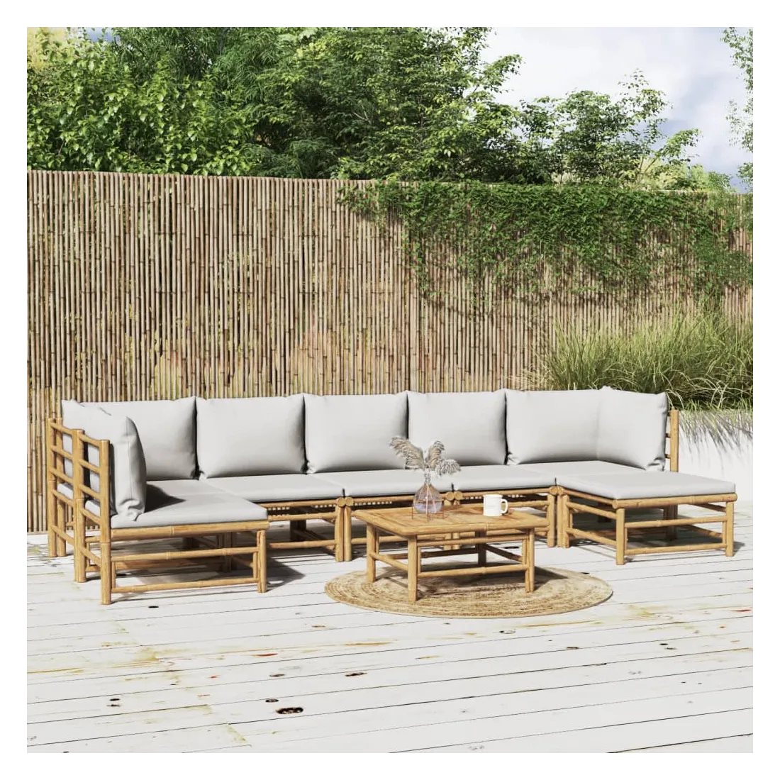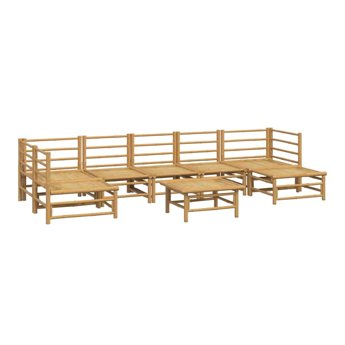Savourez une tasse de café ou de thé par beau temps dans votre espace extérieur avec cet élégant ensemble de salon de jardin en bambou ! Matériau durable : le bambou est connu pour sa flexibilité et sa dureté. Les meubles en bambou sont une bonne option lorsque vous voulez des meubles d'extérieur solides fabriqués à partir de matériaux naturels.Expérience d'assise confortable : le dossier et l'accoudoir ajoutent un confort d'assise supplémentaire pour l'ensemble de canapé de jardin. De plus, les coussins d'assise et de dossier moelleux offrent un confort pendant votre temps d'assise.Table pratique : la table robuste est parfaite pour placer des repas, des boissons et d'autres objets décoratifs.Conception modulaire : l'ensemble de salon est flexible et facile à déplacer, vous pouvez donc le combiner avec d'autres segments modulaires dans la boutique en ligne pour créer vos propres configurations d'ensemble de salon d'extérieur ! Remarque :Pour que vos meubles d'extérieur restent beaux, nous vous recommandons de les protéger avec une housse imperméable.Bon à savoir :Pour faciliter au maximum le montage, chaque produit est livré avec des instructions.