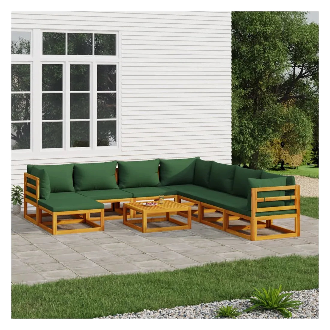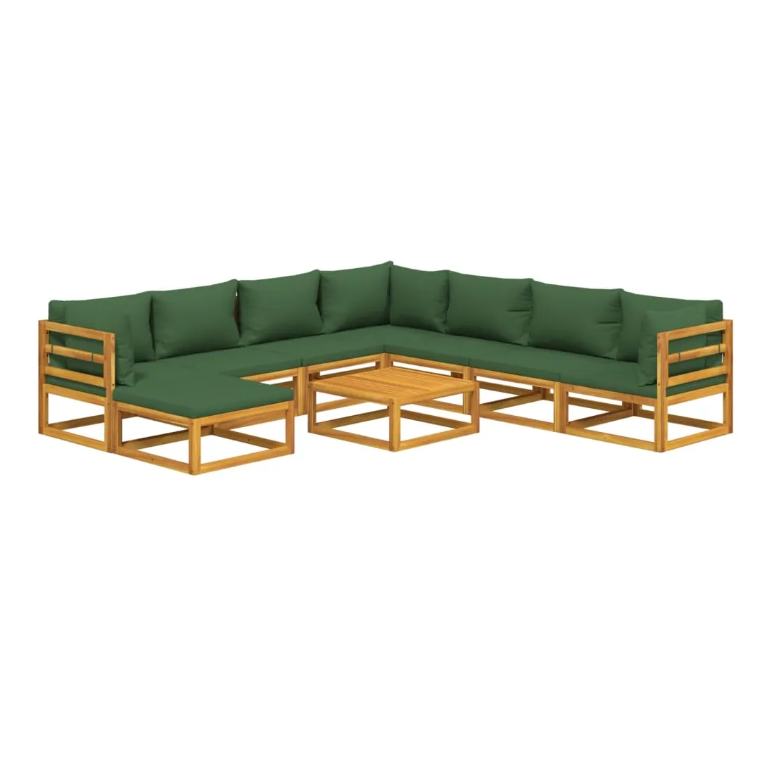 Savourez une tasse de café ou de thé par beau temps dans votre espace extérieur avec cet élégant ensemble de salon de jardin en bois ! Bois d'acacia massif : cet ensemble de meubles de jardin est en bois d'acacia massif. Le bois d'acacia solide est un beau matériau naturel. Le bois d'acacia est un bois dur tropical, qui est dense, robuste et durable.Expérience d'assise confortable : le dossier ajoute un confort d'assise supplémentaire au canapé. De plus, les coussins bien rembourrés offrent du confort pendant votre temps d'assise.Table pratique : la table robuste est parfaite pour placer des repas, des boissons et d'autres objets décoratifs.Design modulaire : le canapé de jardin est flexible et facile à déplacer, vous pouvez donc le combiner avec d'autres segments modulaires de la boutique en ligne pour créer vos propres configurations de salon de jardin ! Bon à savoir :Pour faciliter au maximum le montage, chaque produit est livré avec des instructions. Remarque :Pour que vos meubles d'extérieur restent beaux, nous vous recommandons de les protéger avec une housse imperméable.