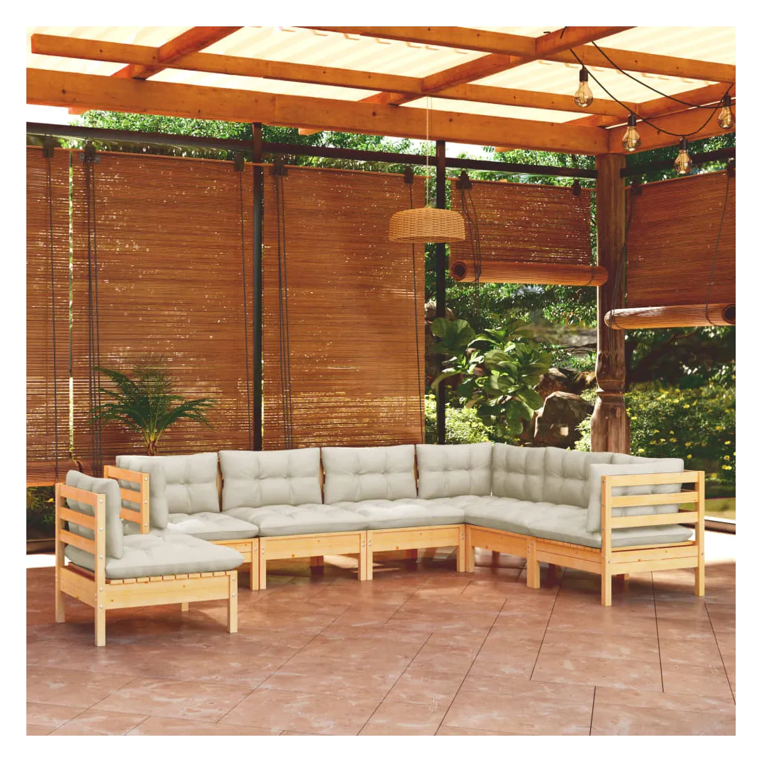 Ce salon de jardin est un excellent choix pour vous détendre et profiter du beau temps, faire une sieste ou discuter avec votre famille ou vos amis. Le salon de patio est fabriqué en bois de pin massif, ce qui le rend robuste et stable. Les coussins ajoutent un confort supplémentaire. Vous pouvez le combiner avec d’autres segments modulaires pour créer vos propres configurations de salon de jardin ! Remarque : afin de prolonger la durée de vie des meubles d'extérieur, nous vous recommandons de les protéger avec une housse imperméable.