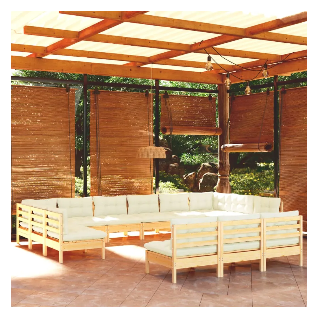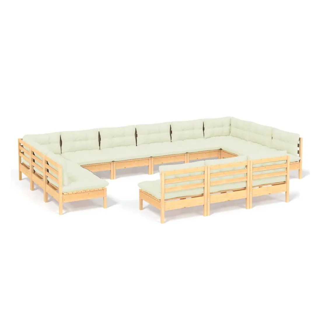 Salon de jardin 13 pcs avec coussins crème Bois de pin solide