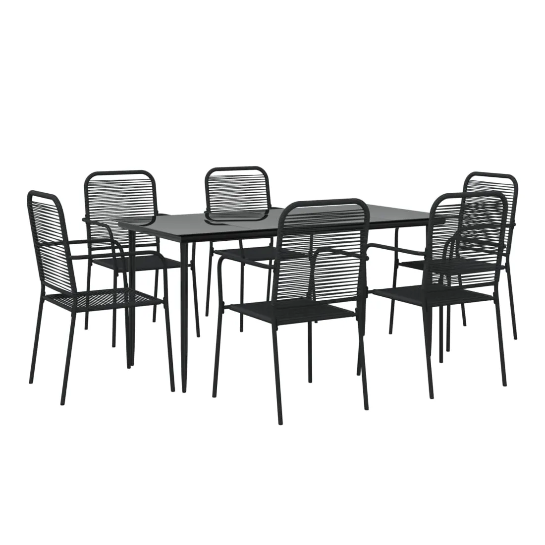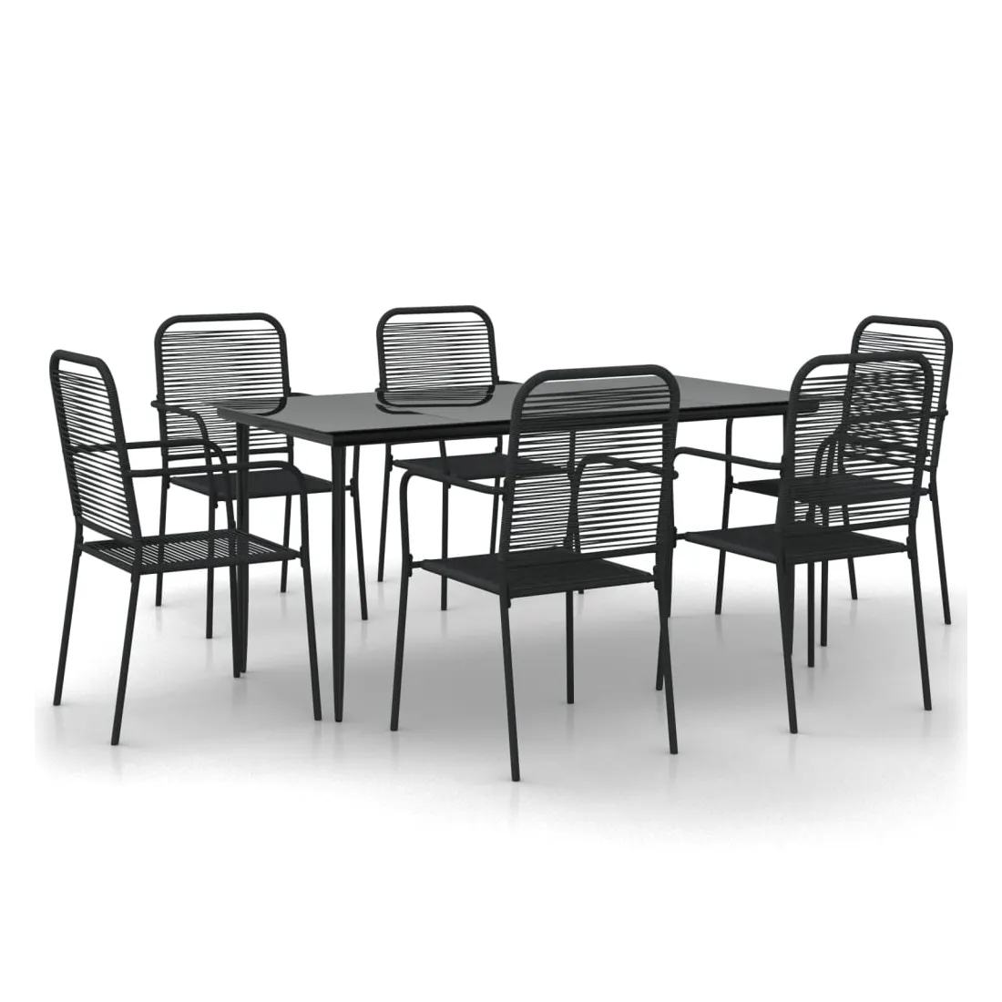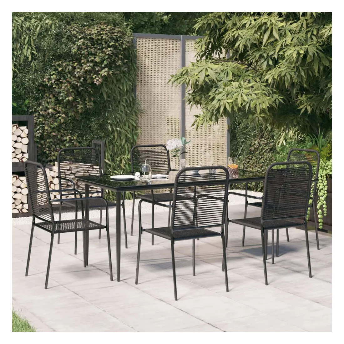 Cet ensemble de salle à manger de jardin tendance au design élégant et aux lignes épurées est un excellent choix pour votre jardin, patio, terrasse, cuisine et même salles à manger. Matériau durable : le dossier et le siège sont fabriqués en corde de coton double, doux au toucher et robuste pour une utilisation à long terme.Cadre robuste : les cadres en acier enduit de poudre rendent l'ensemble de salle à manger d'extérieur robuste et stable pour une utilisation quotidienne à l'extérieur.Dessus de table pratique : le dessus lisse de la table de salle à manger est en verre trempé, facile à nettoyer avec un chiffon humide. De plus, le dessus robuste est parfait pour placer des repas, des boissons et d'autres objets décoratifs.Design flexible : grâce à leur construction légère, ces chaises de jardin sont faciles à déplacer et peuvent être empilées pour économiser de l'espace lorsqu'elles ne sont pas utilisées. Remarque :Afin de prolonger la durée de vie de votre mobilier d'extérieur, nous vous recommandons de le protéger avec une housse imperméable.Chaque produit est livré avec un manuel de montage dans la boîte pour un montage facile.