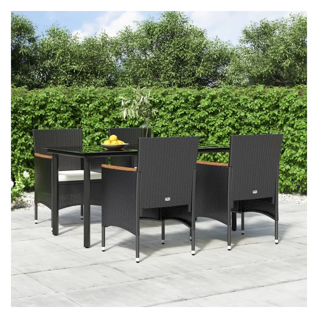 Cet ensemble de salle à manger de jardin, au design élégant et contemporain, est un excellent choix pour manger ou se détendre dans le jardin. Matériau résistant aux intempéries : fabriqué en résine tressée résistante aux intempéries et à l'eau, cet ensemble de salle à manger de jardin est facile à nettoyer, résistant à l'usure et adapté à un usage quotidien.Cadre robuste : les cadres en acier enduit de poudre rendent l'ensemble de salle à manger d'extérieur robuste et stable pour une utilisation quotidienne à l'extérieur.Dessus de table pratique : le dessus lisse de la table de salle à manger est en verre trempé, facile à nettoyer avec un chiffon humide. De plus, le dessus robuste est parfait pour placer des repas, des boissons et d'autres objets décoratifs.Design confortable : conçues avec des dossiers et des accoudoirs incurvés, ces chaises d'extérieur offrent un maximum de confort.Confort supplémentaire : les coussins bien rembourrés offrent un confort ultime pendant votre temps d'assise. Remarque :Afin de prolonger la durée de vie de votre mobilier d'extérieur, nous vous recommandons de le protéger avec une housse imperméable.Chaque produit est livré avec un manuel de montage dans la boîte pour un montage facile.