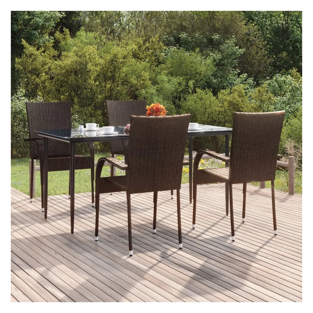 Cet ensemble de salle à manger de jardin est un excellent choix pour manger ou vous détendre dans l'espace extérieur ! Matériau durable : la résine tressée, également connue sous le nom de rotin poly, résiste aux intempéries et est facile à nettoyer. Elle reste belle à l'extérieur pendant une longue période. Elle offre une excellente qualité, commodité et un aspect esthétique.Cadre robuste : les cadres en acier enduit de poudre rendent l'ensemble de salle à manger d'extérieur robuste et stable pour une utilisation quotidienne à l'extérieur.Dessus de table pratique : le dessus lisse de la table de salle à manger est en verre trempé, facile à nettoyer avec un chiffon humide. De plus, le dessus robuste est parfait pour placer des repas, des boissons et d'autres objets décoratifs.Conception flexible : grâce à leur construction légère, ces chaises d'extérieur sont faciles à déplacer et peuvent être empilées pour économiser de l'espace lorsqu'elles ne sont pas utilisées. Remarque :Afin de prolonger la durée de vie de votre mobilier d'extérieur, nous vous recommandons de le protéger avec une housse imperméable.Chaque produit est livré avec un manuel de montage dans la boîte pour un montage facile.