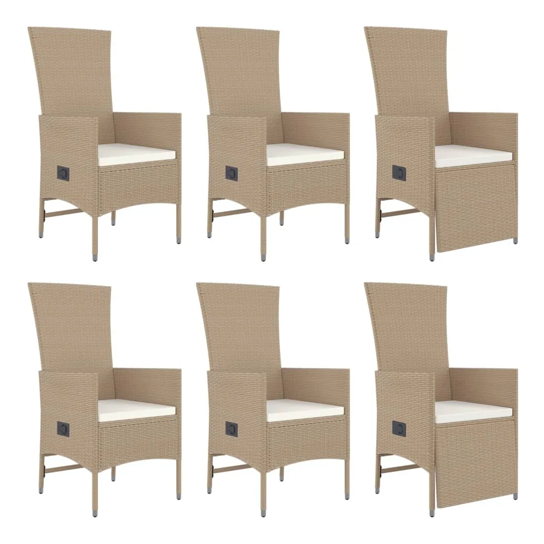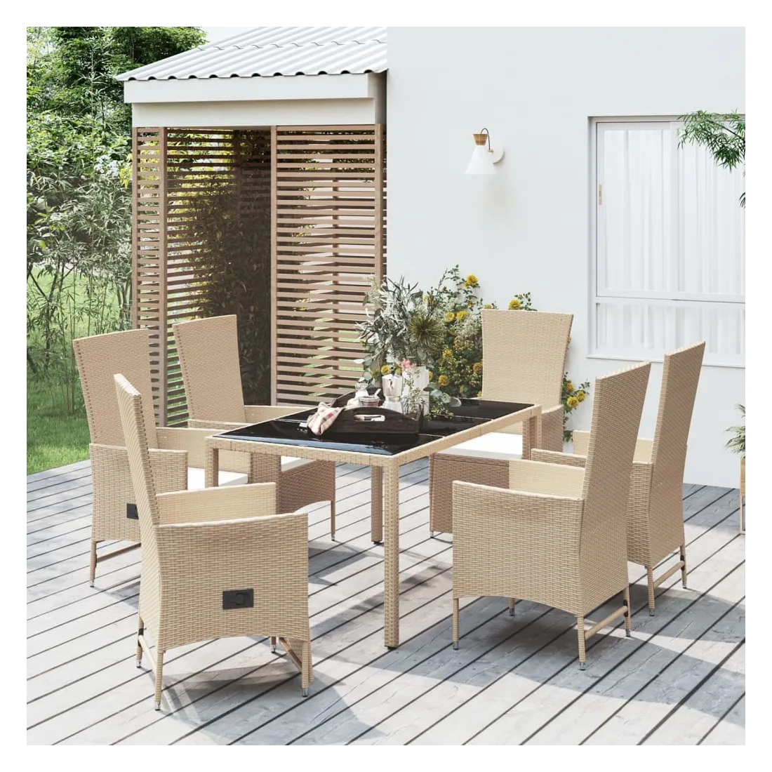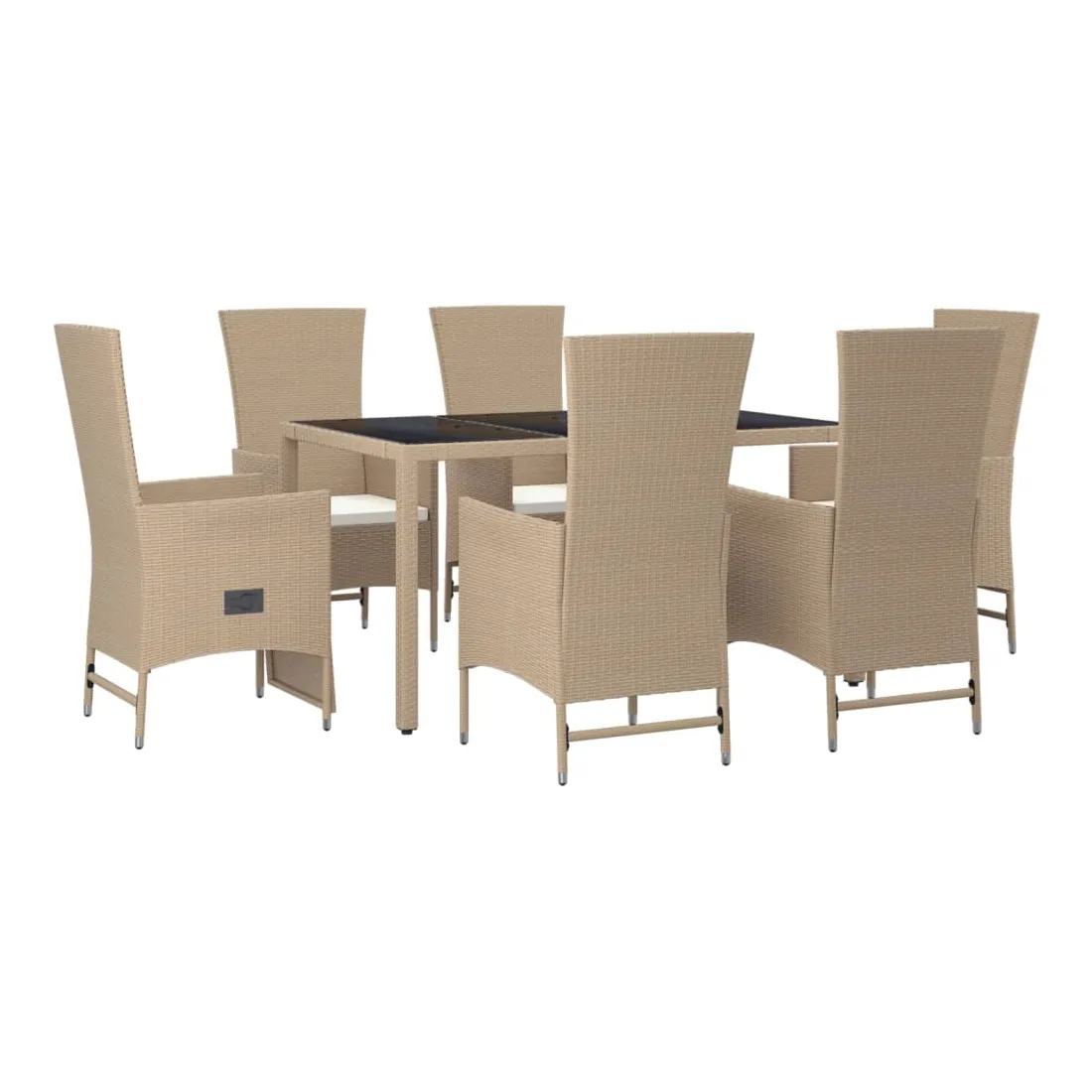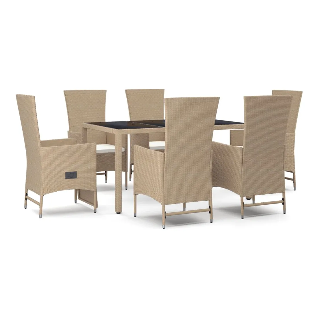 Ensemble à manger de jardin et coussins 7 pcs beige poly rotin