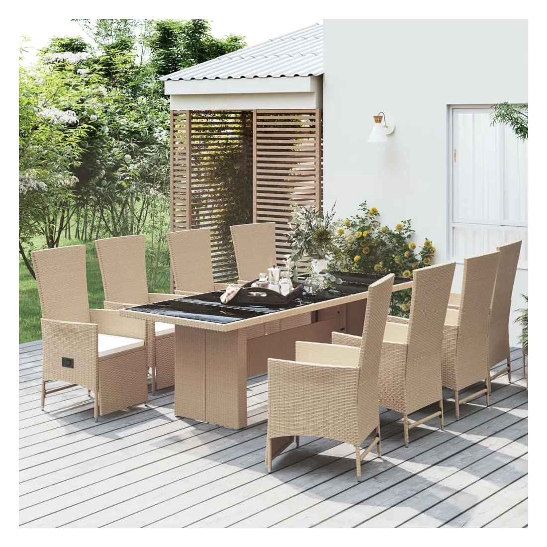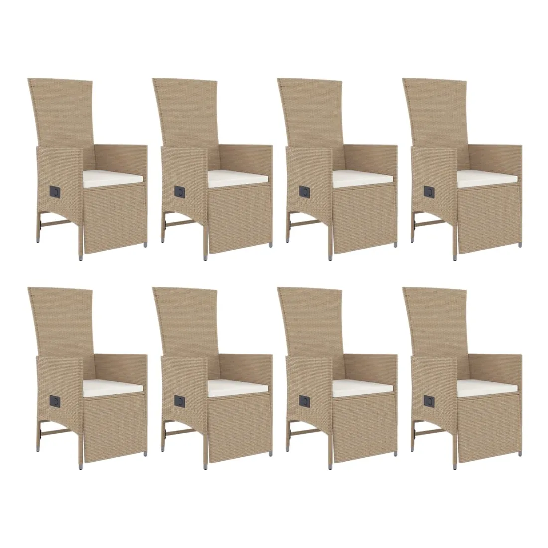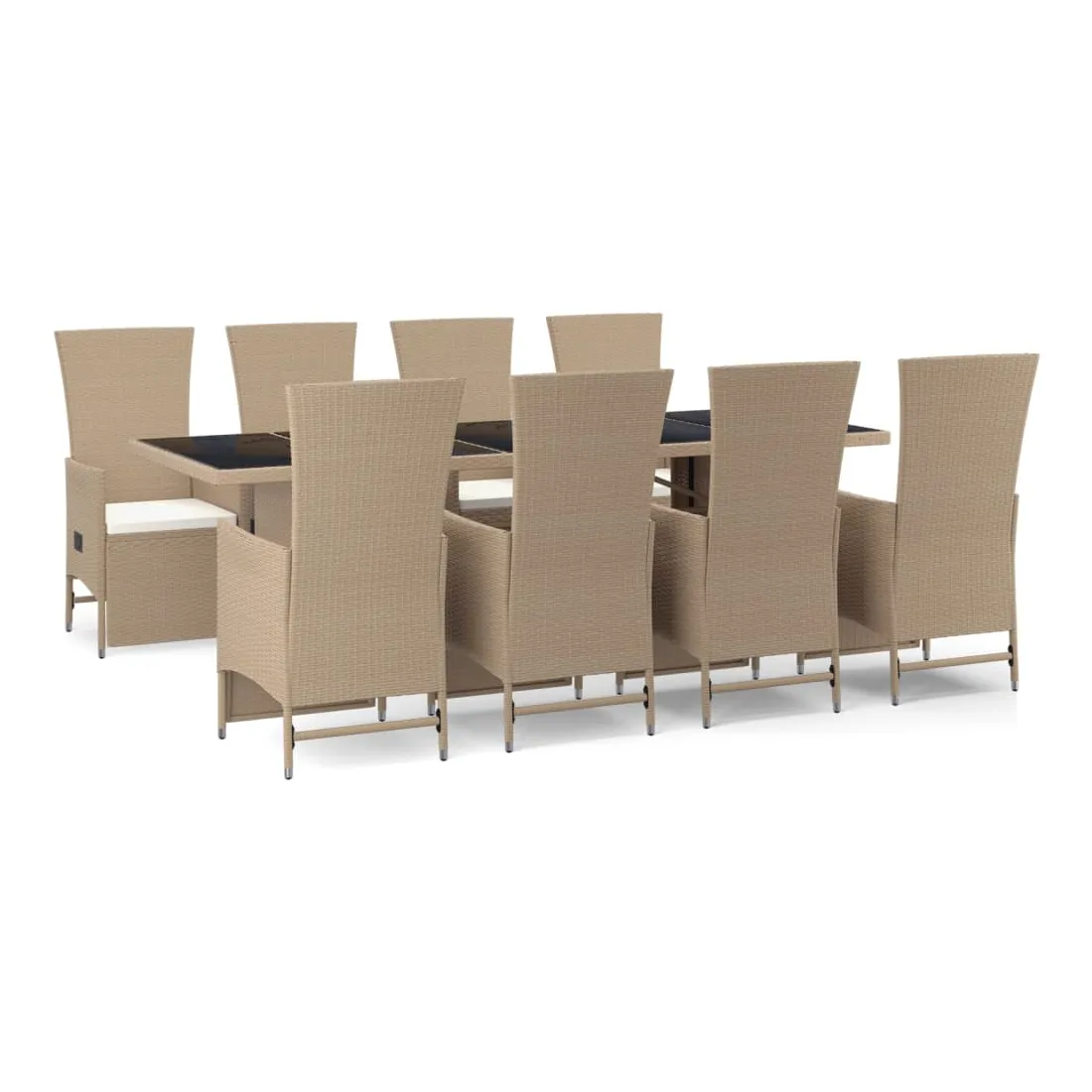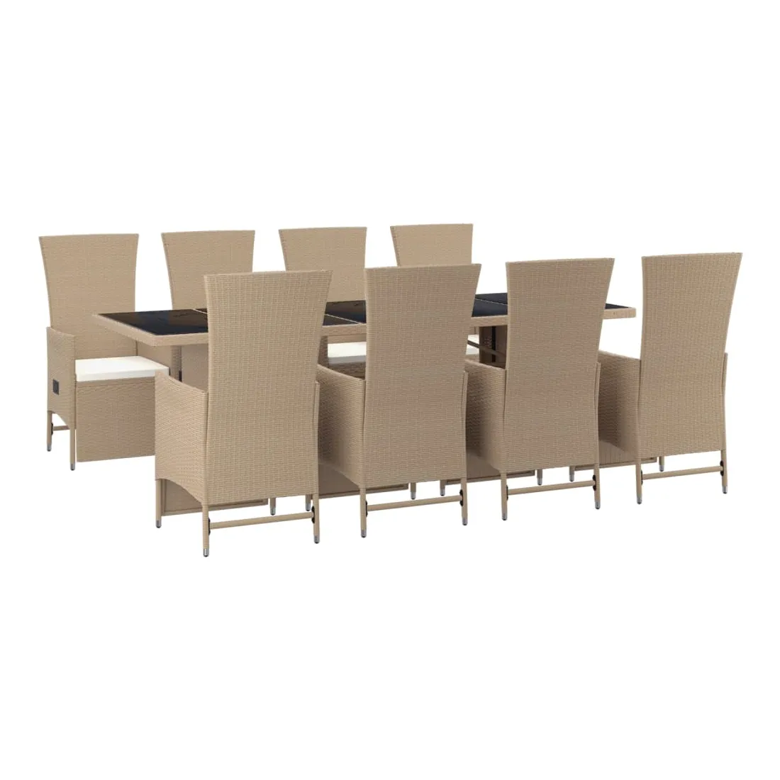 Ensemble à manger de jardin et coussins 9 pcs beige Poly rotin