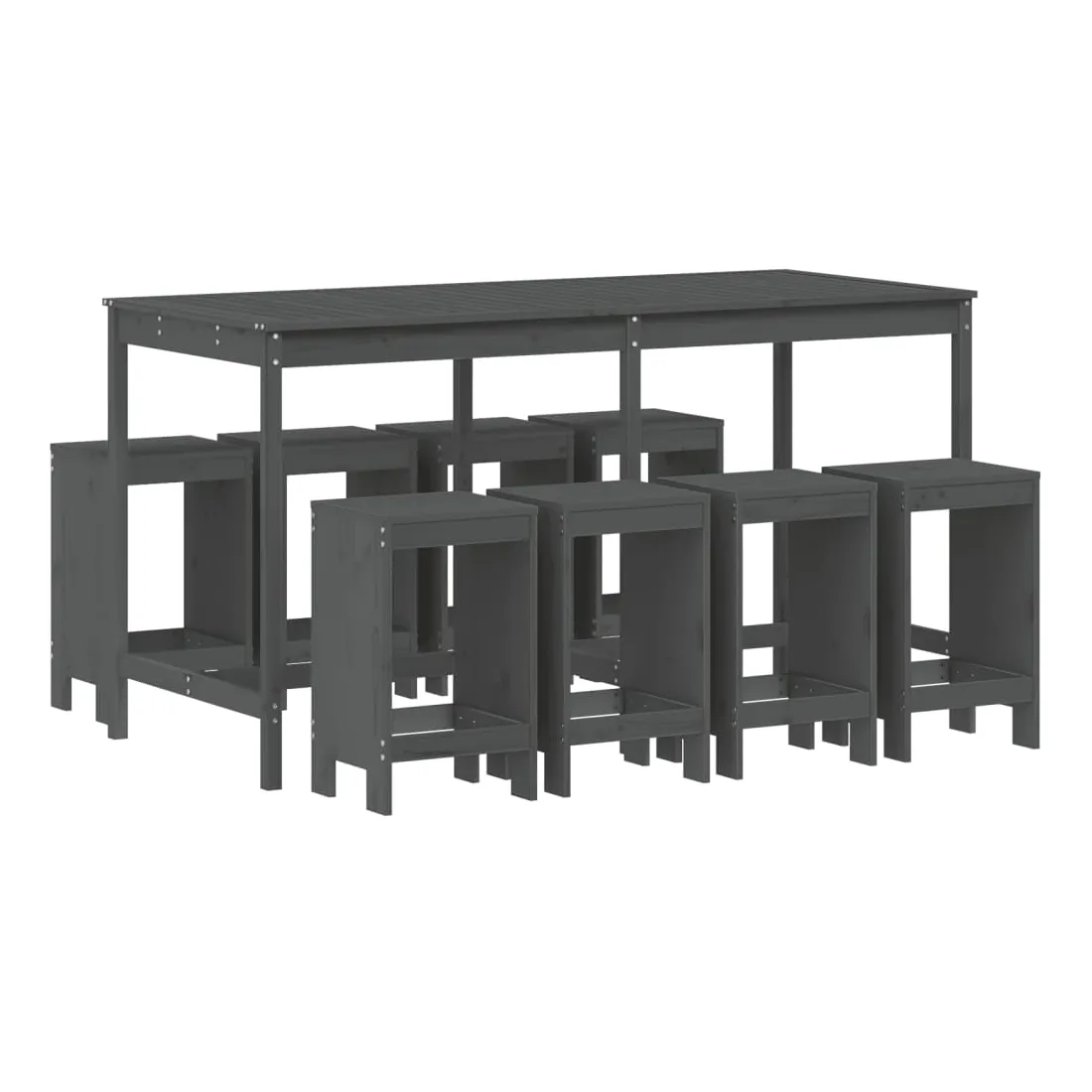 Prenez une gorgée de votre boisson préférée ou profitez d'un bon repas avec votre famille et vos amis autour de cet ensemble de bar de jardin en bois ! Bois de pin massif : cet ensemble de bar est fabriqué en bois de pin massif. le bois de pin massif est un matériau naturel magnifique. Le bois de pin a un grain droit et les nœuds donnent au matériau son aspect caractéristique et rustique.Dessus robuste : la table de bar de l'ensemble de pub est dotée d'un dessus robuste, parfait pour placer vos boissons, vos aliments et autres objets décoratifs.Design pratique : ces tabourets de bar en bois n'ont pas de dossier, vous pouvez donc vous asseoir confortablement de chaque côté des tabourets et les ranger sous le comptoir lorsqu'ils ne sont pas utilisés.Nombreuses applications : avec son design minimaliste, l'ensemble de bar de terrasse peut être intégré dans n'importe quel coin du jardin, terrasse, balcon, jardin, etc. Bon à savoir :Pour que vos meubles d'extérieur restent beaux, nous vous recommandons de les protéger avec une housse imperméable.