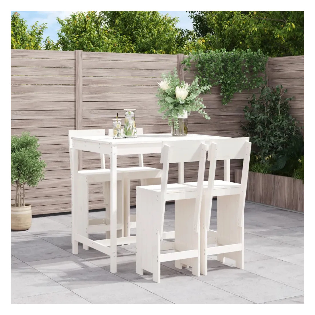 Ensemble de bar de jardin 5 pcs blanc bois massif de pin