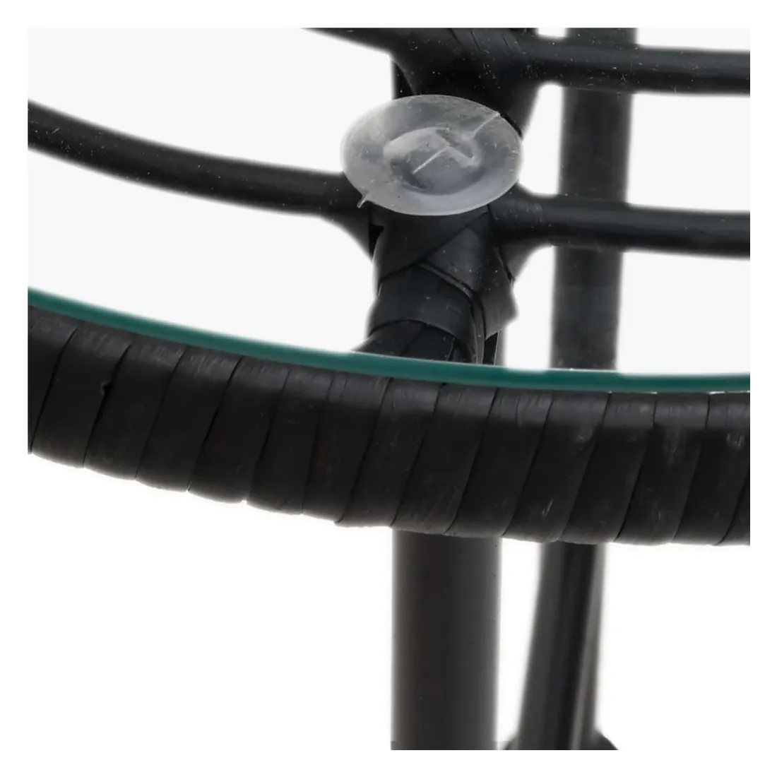 - Matériau : acier, verre trempé, polyéthylène avec un aspect de rotin