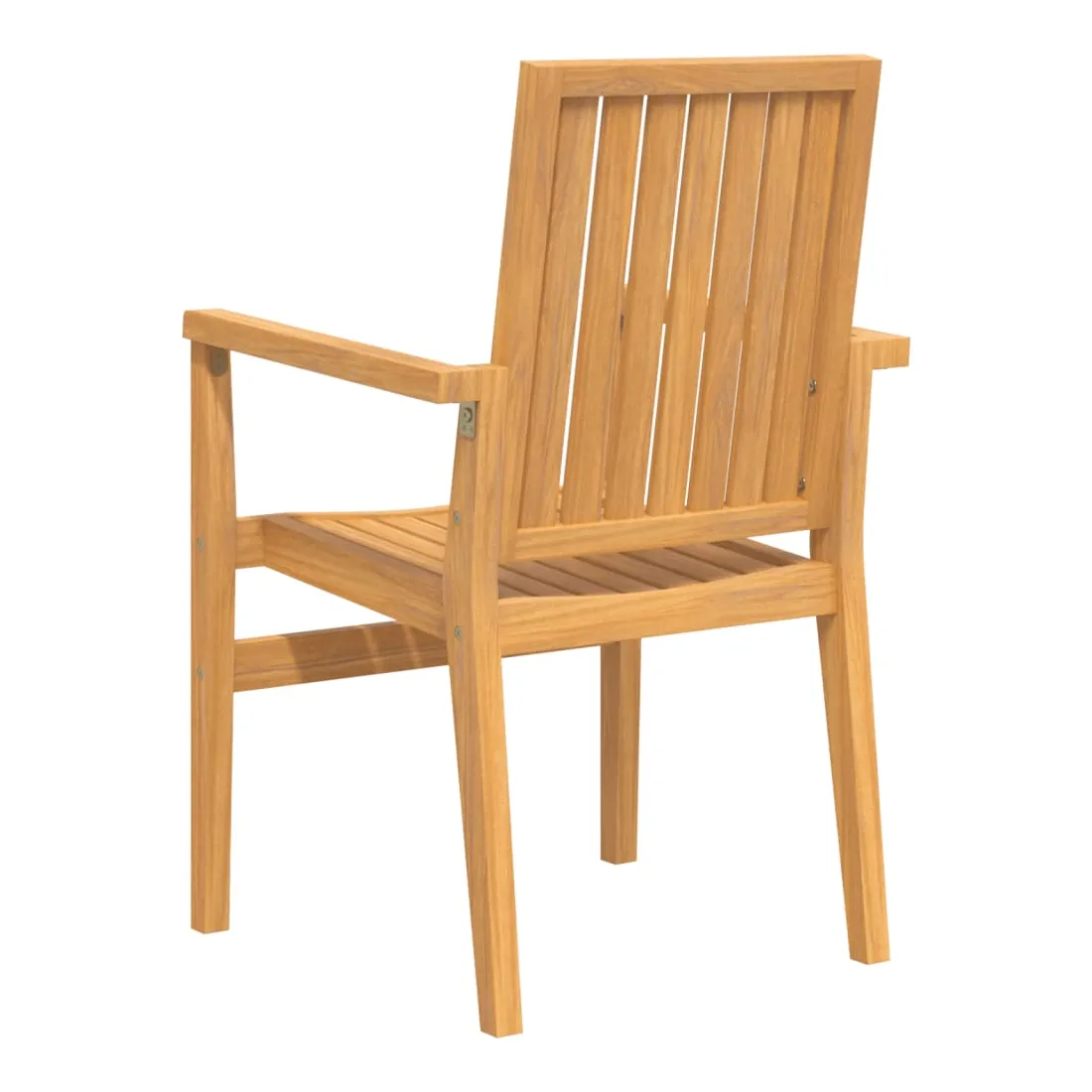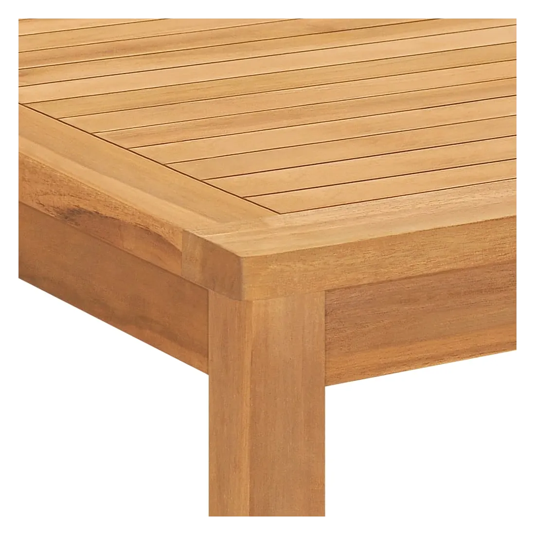 vidaXLProfitez d'un bon repas ou d'un thé l'après-midi dans votre espace extérieur avec cet ensemble à manger de jardin en bois ! Bois de teck massif : le bois de teck massif est un matériau naturel magnifique. Il a été chevronné, séché au four, puis sablé finement pour lui donner une apparence très lisse. Le bois de teck est connu pour sa résistance exceptionnelle et sa résistance aux intempéries.Dessus de table pratique : le dessus de table robuste de la table à manger permet de placer des collations, des paniers de fruits, des objets décoratifs et d'autres objets nécessaires.Assise confortable : le dossier et les accoudoirs assurent une assise confortable à votre fauteuil de jardin.Fonction empilable : la chaise à manger est empilable pour économiser de l'espace lorsqu'elle n'est pas utilisée.Surface facile à nettoyer : la surface lisse rend l'ensemble de meubles de jardin facile à nettoyer avec un chiffon humide. Bon à savoir :Pour que vos meubles d'extérieur restent beaux, nous vous recommandons de les protéger avec une housse imperméable.