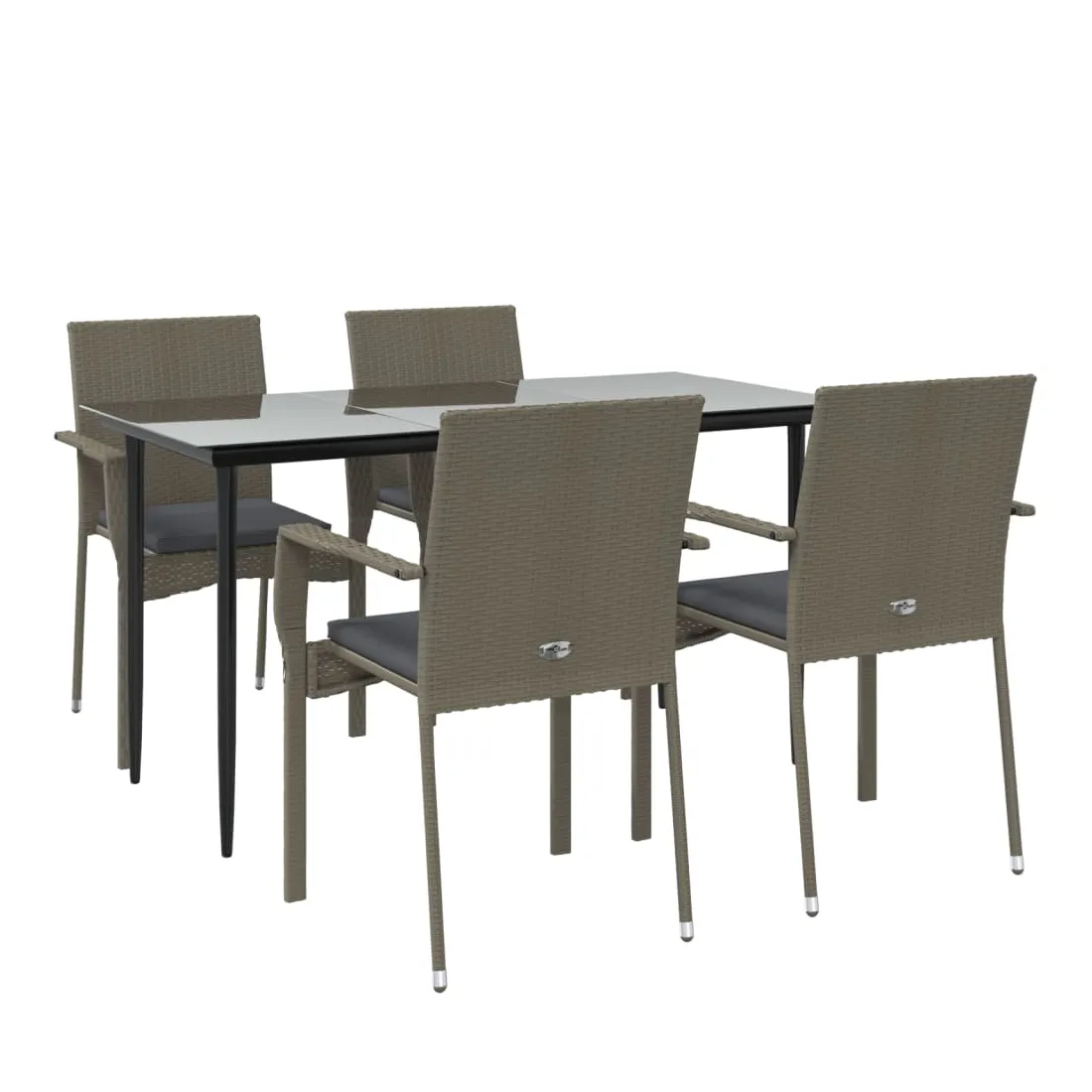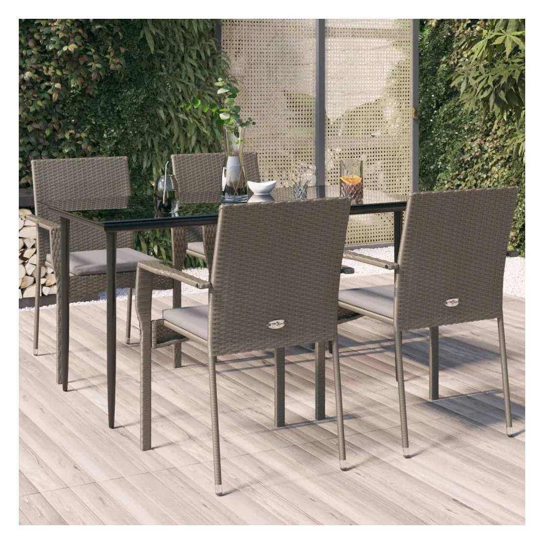 Cet ensemble de salle à manger de jardin tendance, au design élégant et contemporain, est un excellent choix pour manger ou vous détendre dans votre jardin. Matériau résistant aux intempéries : la résine tressée, également connue sous le nom de rotin poly, résiste aux intempéries et est facile à nettoyer. Elle reste belle à l'extérieur pendant une longue période. Elle offre une excellente qualité, commodité et un aspect esthétique.Cadre robuste : les cadres en acier enduit de poudre rendent l'ensemble de salle à manger d'extérieur robuste et stable pour une utilisation quotidienne à l'extérieur.Dessus de table pratique : le dessus lisse de la table de jardin est en verre trempé, facile à nettoyer avec un chiffon humide. De plus, le dessus robuste est parfait pour placer des repas, des boissons et d'autres objets décoratifs.Conception modulaire : l'ensemble de salle à manger de jardin est flexible et facile à déplacer, vous pouvez donc le combiner avec d'autres segments modulaires dans la boutique en ligne pour créer vos propres configurations d'ensemble de salle à manger de jardin !Expérience d'assise confortable : le dossier ajoute un confort d'assise supplémentaire à la chaise de jardin. De plus, les coussins bien rembourrés vous permettent de vous asseoir confortablement. Bon à savoir :Pour faciliter au maximum le montage, chaque produit est livré avec des instructions. Remarque :Pour que vos meubles d'extérieur restent beaux, nous vous recommandons de les protéger avec une housse imperméable.