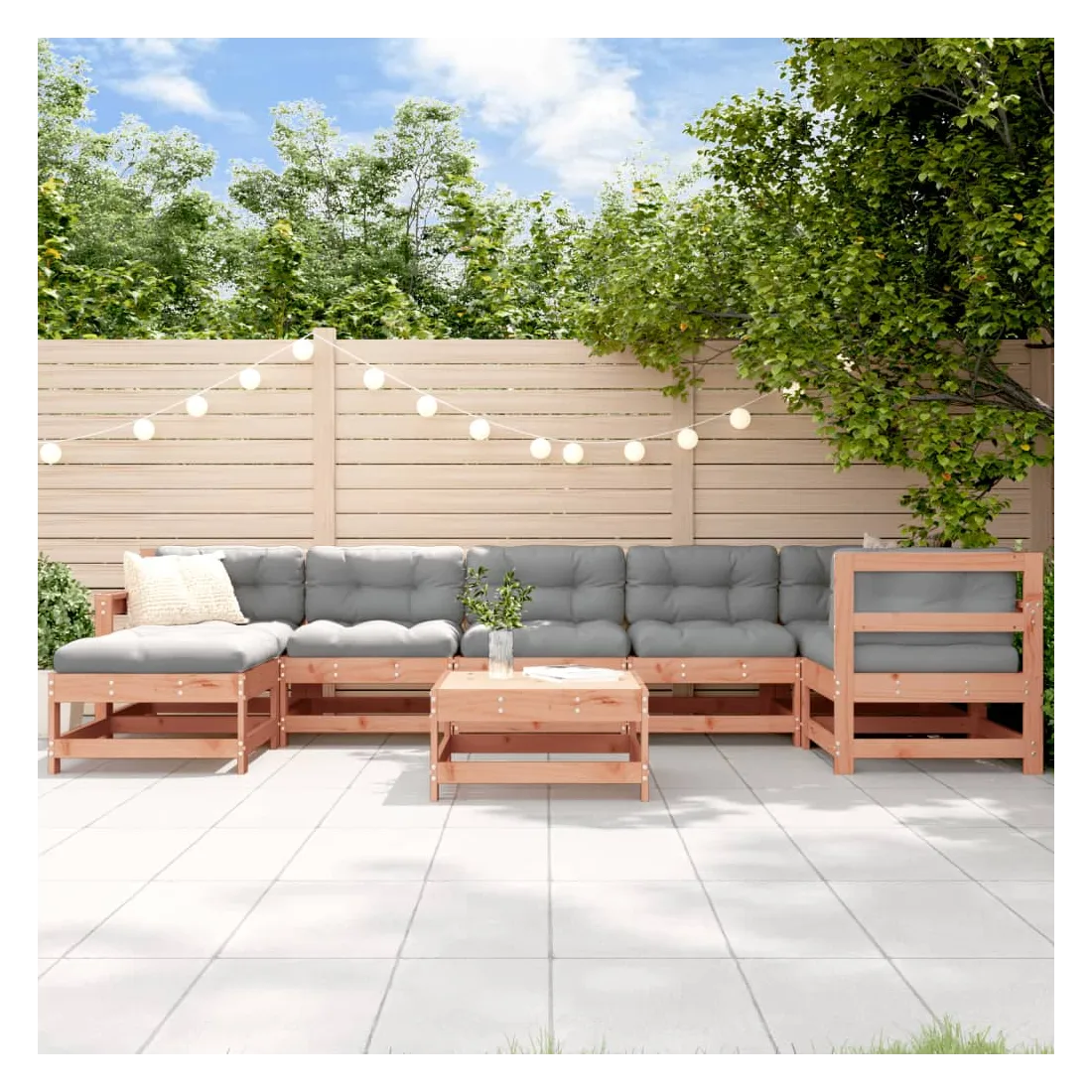 Ce salon de jardin en bois, qui se démarque par son design à lattes et ses coussins moelleux, sera un excellent supplément à votre jardin, patio ou terrasse pour profiter d'un moment agréable avec votre famille ou vos amis. Bois de douglas massif : le bois de douglas massif est un bois très durable qui fonctionne bien pour l'extérieur. Le bois de douglas est également suffisamment solide pour être travaillé avec un minimum de soin, même sous l'influence des intempéries.Cadre robuste et stable : le cadre en bois rend l'ensemble de salon robuste et stable pour une utilisation quotidienne à l'extérieur.Expérience d'assise confortable : le dossier et l'accoudoir ajoutent un confort d'assise supplémentaire à l'ensemble de meubles de jardin. De plus, les coussins bien rembourrés vous permettent de vous asseoir confortablement.Design modulaire : le canapé est flexible et facile à déplacer. Vous pouvez le combiner avec d'autres segments modulaires de la boutique en ligne pour créer vos propres configurations de salon de jardin ! Bon à savoir :Pour que vos meubles d'extérieur restent beaux, nous vous recommandons de les protéger avec une housse imperméable.
