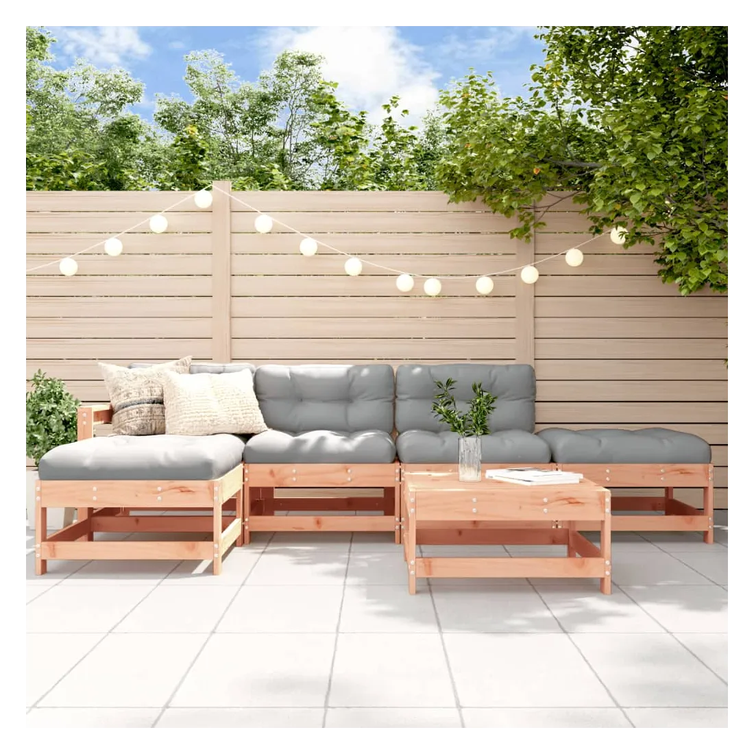 Ce salon de jardin en bois, qui se démarque par son design à lattes et ses coussins moelleux, sera un excellent supplément à votre jardin, patio ou terrasse pour profiter d'un moment agréable avec votre famille ou vos amis. Bois de douglas massif : le bois de douglas massif est un bois très durable qui fonctionne bien pour l'extérieur. Le bois de Douglas est également suffisamment solide pour être travaillé avec un minimum de soin, même sous l'influence des intempéries.Cadre robuste et stable : le cadre en bois rend l'ensemble de salon robuste et stable pour une utilisation quotidienne à l'extérieur.Expérience d'assise confortable : le dossier et l'accoudoir ajoutent un confort d'assise supplémentaire à l'ensemble de meubles de jardin. De plus, les coussins bien rembourrés vous permettent de vous asseoir confortablement.Design modulaire : le canapé est flexible et facile à déplacer. Vous pouvez le combiner avec d'autres segments modulaires de la boutique en ligne pour créer vos propres configurations de salon de jardin ! Bon à savoir :Pour que vos meubles d'extérieur restent beaux, nous vous recommandons de les protéger avec une housse imperméable.