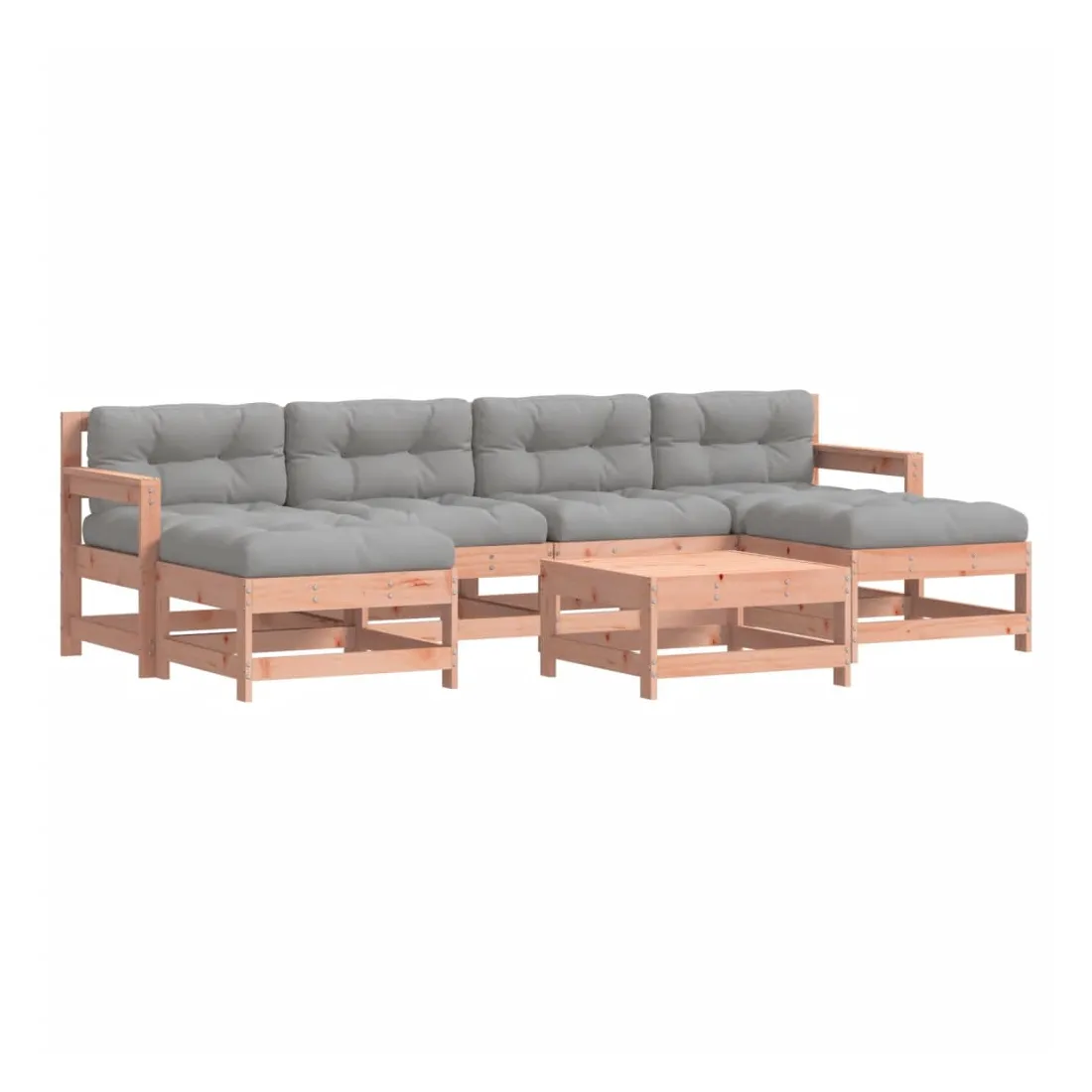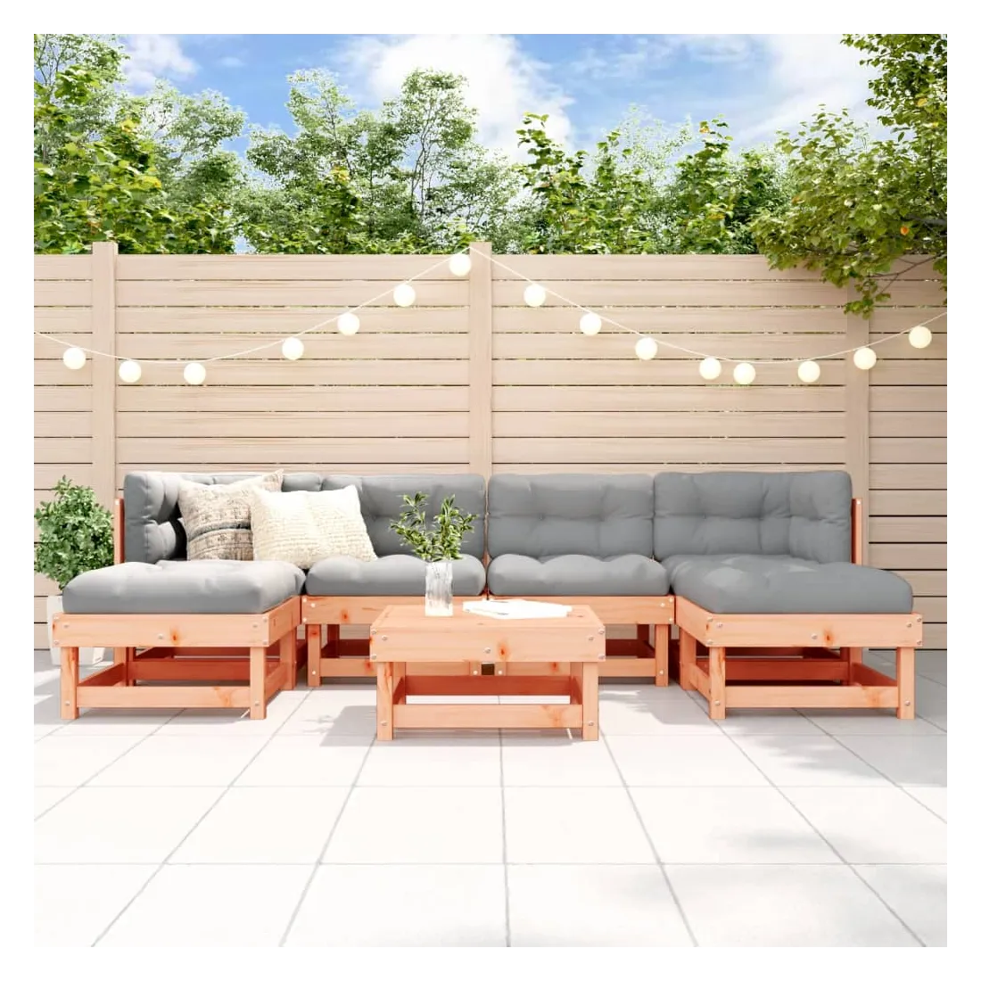 Ce salon de jardin en bois, qui se démarque par son design à lattes et ses coussins moelleux, sera un excellent supplément à votre jardin, patio ou terrasse pour profiter d'un moment agréable avec votre famille ou vos amis. Bois de douglas massif : le bois de douglas massif est un bois très durable qui fonctionne bien pour l'extérieur. Le bois de douglas est également suffisamment solide pour être travaillé avec un minimum de soin, même sous l'influence des intempéries.Cadre robuste et stable : le cadre en bois rend l'ensemble de salon robuste et stable pour une utilisation quotidienne à l'extérieur.Expérience d'assise confortable : le dossier et l'accoudoir ajoutent un confort d'assise supplémentaire à l'ensemble de meubles de jardin. De plus, les coussins bien rembourrés vous permettent de vous asseoir confortablement.Design modulaire : le canapé est flexible et facile à déplacer. Vous pouvez le combiner avec d'autres segments modulaires de la boutique en ligne pour créer vos propres configurations de salon de jardin ! Bon à savoir :Pour que vos meubles d'extérieur restent beaux, nous vous recommandons de les protéger avec une housse imperméable.