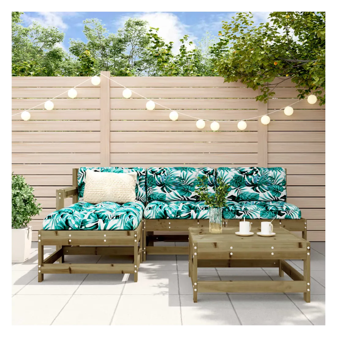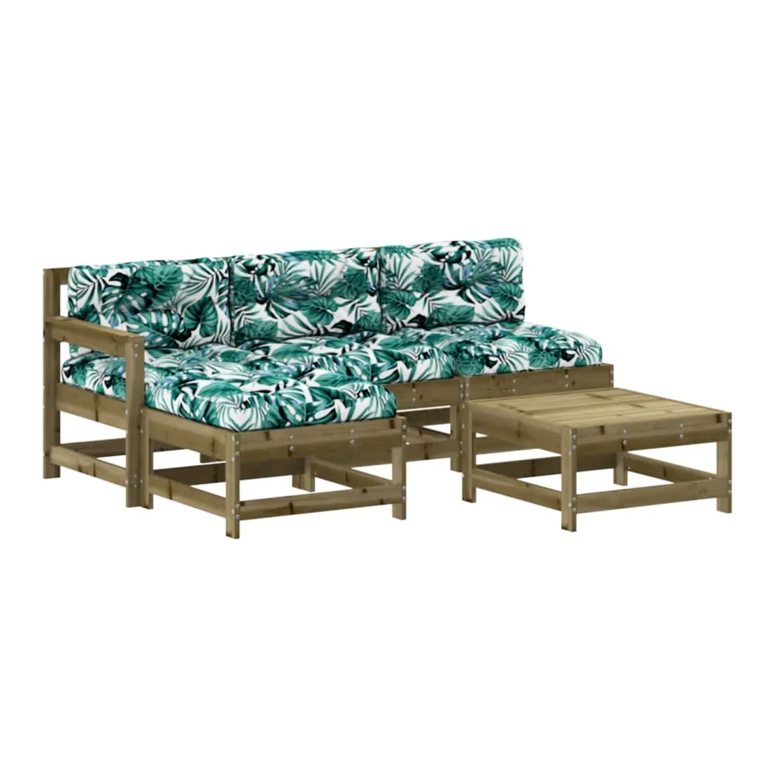 Salon de jardin 5 pcs avec coussins bois de pin imprégné