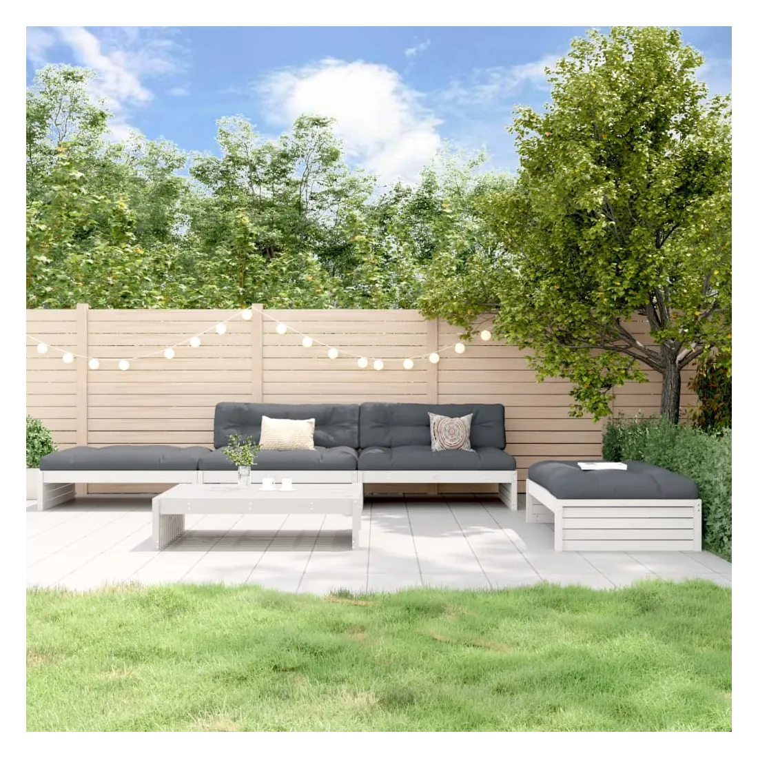 Ce salon de jardin en bois, qui se démarque par son design à lattes et ses coussins moelleux, sera un excellent supplément à votre jardin, patio ou terrasse pour profiter d'un moment agréable avec votre famille ou vos amis. Bois de pin massif : le bois de pin massif est un matériau naturel magnifique. Le bois de pin a un grain droit et les nœuds donnent au matériau son aspect caractéristique et rustique.Cadre robuste et stable : les cadres en bois rendent l'ensemble de salon robuste et stable pour une utilisation quotidienne à l'extérieur.Expérience d'assise confortable : le dossier ajoute un confort d'assise supplémentaire à l'ensemble de meubles de jardin. De plus, le coussin bien rembourré vous permet de vous asseoir confortablement.Design modulaire : le canapé est flexible et facile à déplacer. Vous pouvez le combiner avec d'autres segments modulaires de la boutique en ligne pour créer vos propres configurations de salon de jardin ! Bon à savoir :Pour que vos meubles d'extérieur restent beaux, nous vous recommandons de les protéger avec une housse imperméable.