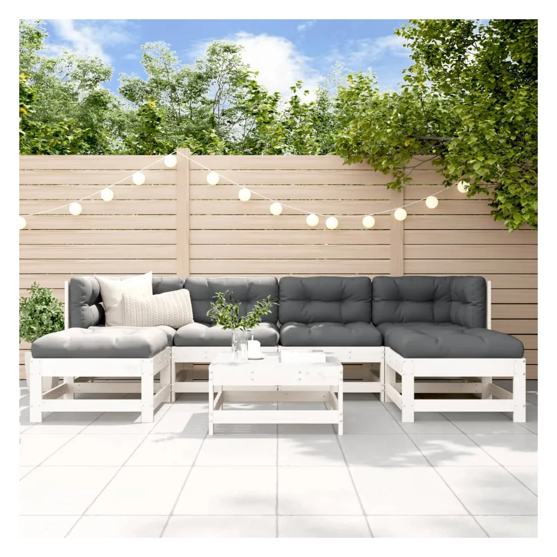 Ce salon de jardin en bois, qui se démarque par son design à lattes, sera un excellent supplément à votre jardin, patio ou terrasse pour profiter d'un moment agréable avec votre famille ou vos amis. Bois de pin massif : le bois de pin massif est un matériau naturel magnifique. Le bois de pin a un grain droit et les nœuds donnent au matériau son aspect caractéristique et rustique.Expérience d'assise confortable : le dossier ajoute un confort d'assise supplémentaire à l'ensemble de salon.Design modulaire : le canapé est flexible et facile à déplacer. Vous pouvez le combiner avec d'autres segments modulaires de la boutique en ligne pour créer vos propres configurations de salon de jardin ! Bon à savoir :Les coussins ne sont pas inclus.Pour que vos meubles d'extérieur restent beaux, nous vous recommandons de les protéger avec une housse imperméable.