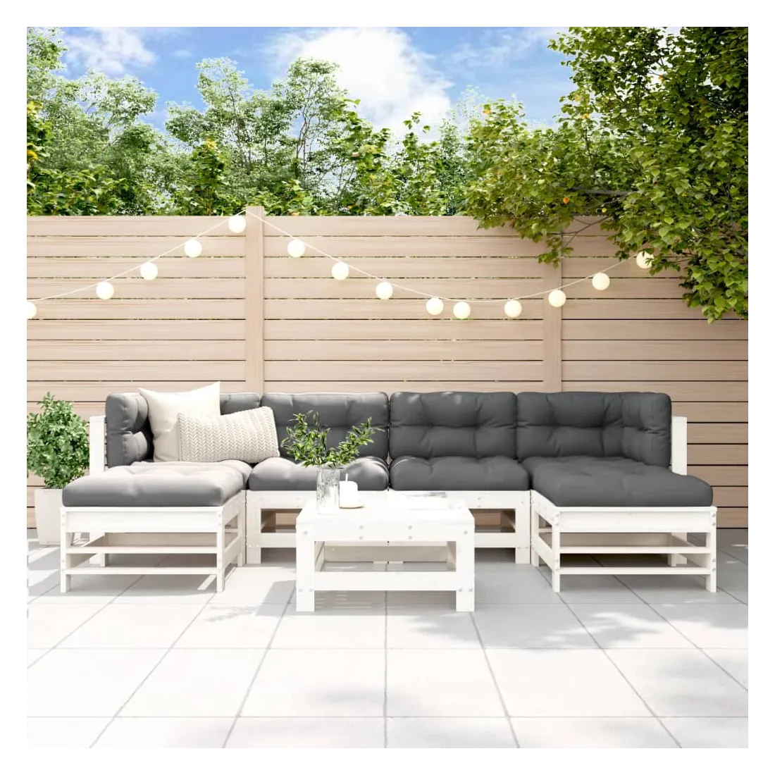 Salon de jardin 7 pcs Blanc Bois de pin massif
