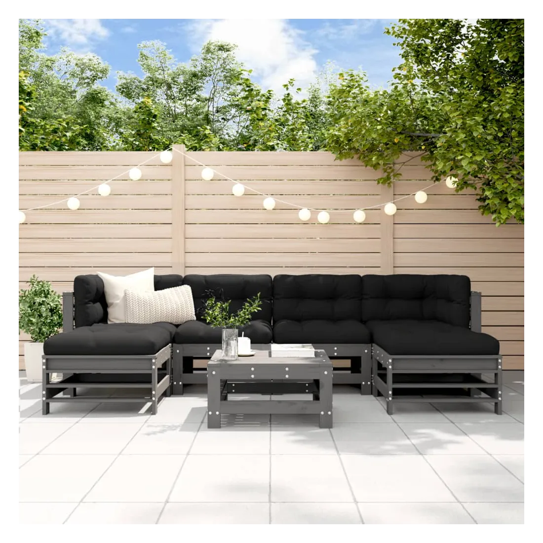 Salon de jardin 7 pcs Gris Bois de pin massif