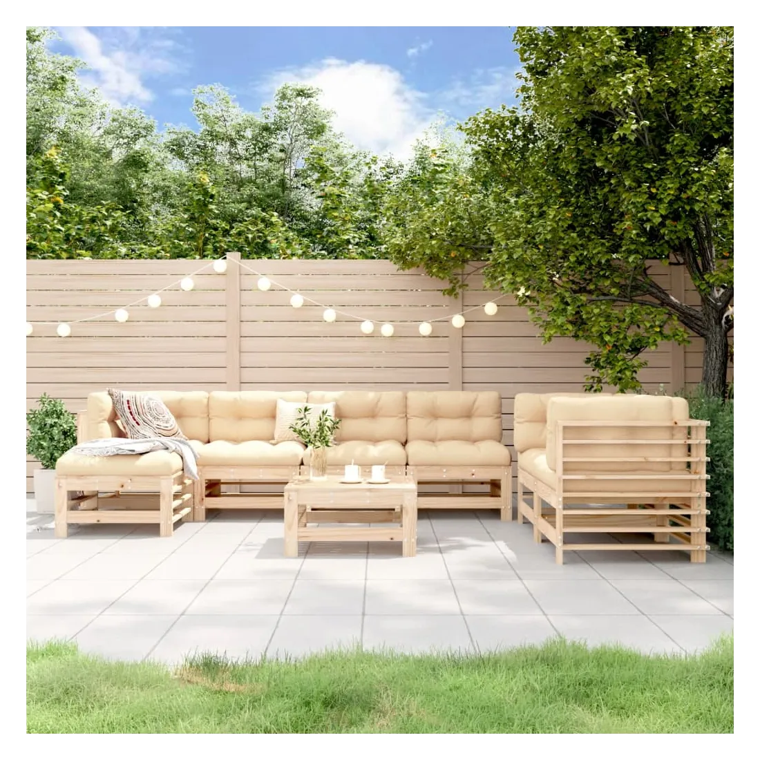 Ce salon de jardin en bois, qui se démarque par son design à lattes, sera un excellent supplément à votre jardin, patio ou terrasse pour profiter d'un moment agréable avec votre famille ou vos amis. Bois de pin massif : le bois de pin massif est un matériau naturel magnifique. Le bois de pin a un grain droit et les nœuds donnent au matériau son aspect caractéristique et rustique.Expérience d'assise confortable : le dossier ajoute un confort d'assise supplémentaire à l'ensemble de salon.Design modulaire : le canapé est flexible et facile à déplacer. Vous pouvez le combiner avec d'autres segments modulaires de la boutique en ligne pour créer vos propres configurations de salon de jardin ! Bon à savoir :Les coussins ne sont pas inclus.Pour que vos meubles d'extérieur restent beaux, nous vous recommandons de les protéger avec une housse imperméable.