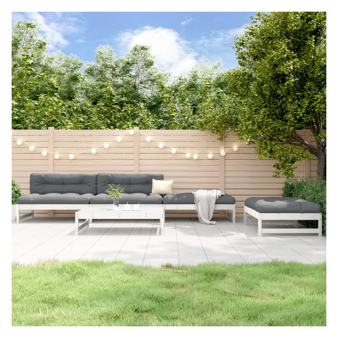 Ce salon de jardin en bois, qui se démarque par son design à lattes, sera un excellent supplément à votre jardin, patio ou terrasse pour profiter d'un moment agréable avec votre famille ou vos amis. Bois de pin massif : le bois de pin massif est un matériau naturel magnifique. Le bois de pin a un grain droit et les nœuds donnent au matériau son aspect caractéristique et rustique.Cadre robuste et stable : le cadre en bois rend l'ensemble de salon robuste et stable pour une utilisation quotidienne à l'extérieur.Expérience d'assise confortable : le dossier ajoute un confort d'assise supplémentaire au canapé d'extérieur.Design modulaire : le canapé est flexible et facile à déplacer. Vous pouvez le combiner avec d'autres segments modulaires de la boutique en ligne pour créer vos propres configurations de salon de jardin ! Bon à savoir :Les coussins ne sont pas inclus dans la livraison.Pour que vos meubles d'extérieur restent beaux, nous vous recommandons de les protéger avec une housse imperméable.