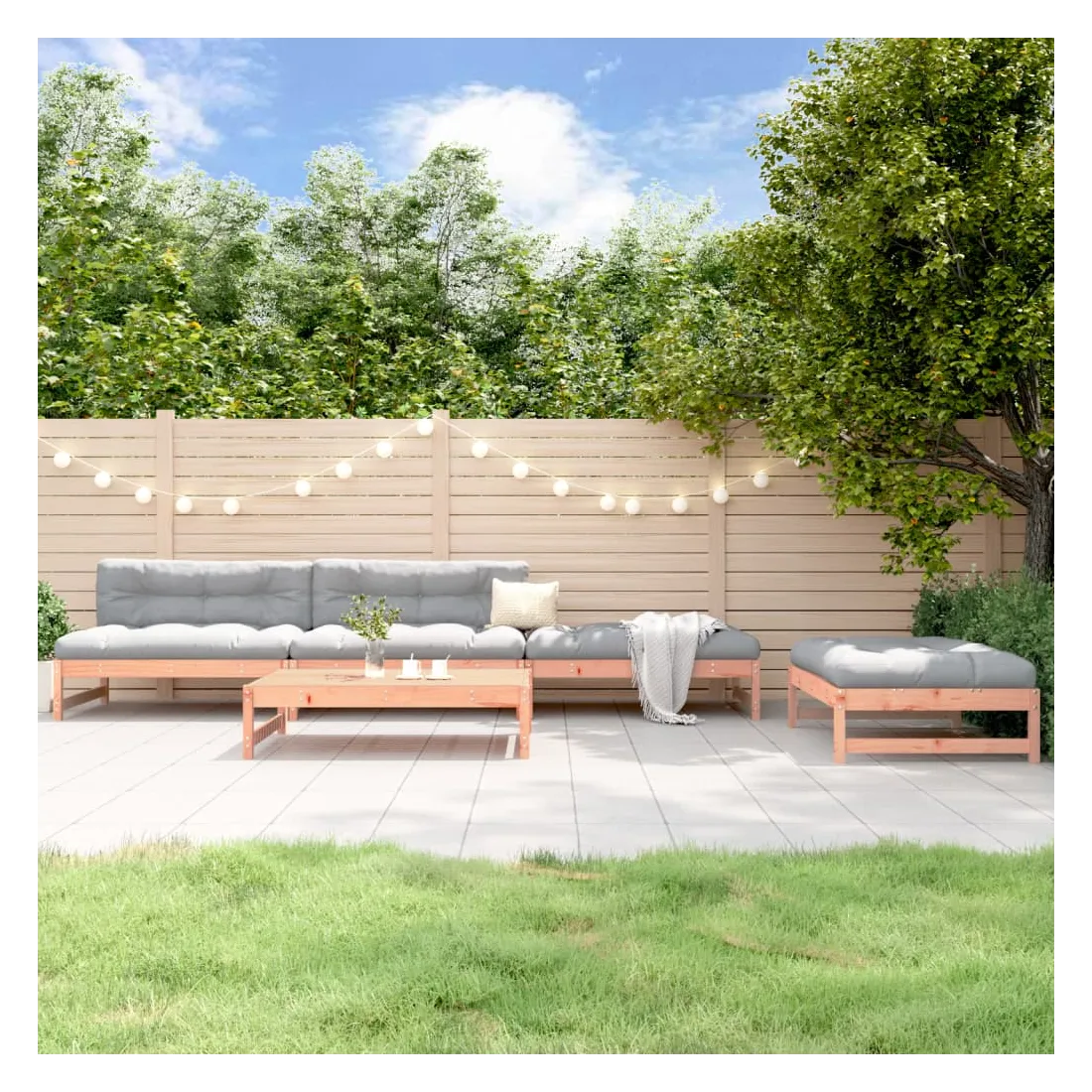 Ce salon de jardin en bois, qui se démarque par son design à lattes, sera un excellent supplément à votre jardin, patio ou terrasse pour profiter d'un moment agréable avec votre famille ou vos amis. Bois de douglas massif : le bois de douglas massif est un bois très durable qui fonctionne bien pour l'extérieur. Le bois de douglas est également suffisamment solide pour être travaillé avec un minimum de soin, même sous l'influence des intempéries.Cadre robuste et stable : le cadre en bois rend l'ensemble de salon robuste et stable pour une utilisation quotidienne à l'extérieur.Expérience d'assise confortable : le dossier ajoute un confort d'assise supplémentaire au canapé d'extérieur.Design modulaire : le canapé est flexible et facile à déplacer. Vous pouvez le combiner avec d'autres segments modulaires de la boutique en ligne pour créer vos propres configurations de salon de jardin ! Bon à savoir :Les coussins ne sont pas inclus dans la livraison.Pour que vos meubles d'extérieur restent beaux, nous vous recommandons de les protéger avec une housse imperméable.