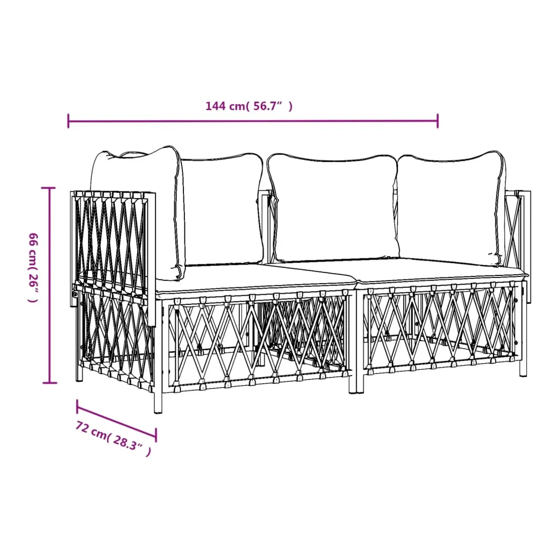 Profitez d'une tasse de café ou de thé dans votre espace extérieur avec cet ensemble de salon de jardin confortable ! Matériau durable : le tissu tissé est tout textile formé par tissage. C'est un type de tissu extrêmement utile que nous utilisons beaucoup dans notre vie quotidienne en raison de sa durabilité et de sa polyvalence.Cadre robuste : le cadre en acier enduit de poudre rend l'ensemble de salon robuste et stable pour une utilisation quotidienne à l'extérieur.Expérience d'assise confortable : le dossier ajoute un confort d'assise supplémentaire au canapé d'extérieur. De plus, les coussins bien rembourrés offrent du confort pendant votre temps d'assise.Design modulaire : le canapé est flexible et facile à déplacer, vous pouvez donc le combiner avec d'autres segments modulaires de la boutique en ligne pour créer vos propres configurations de salon de jardin ! Remarque :Pour que vos meubles d'extérieur restent beaux, nous vous recommandons de les protéger avec une housse imperméable.