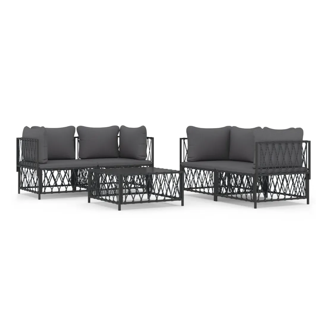 Salon de jardin avec coussins 5 pcs anthracite acier
