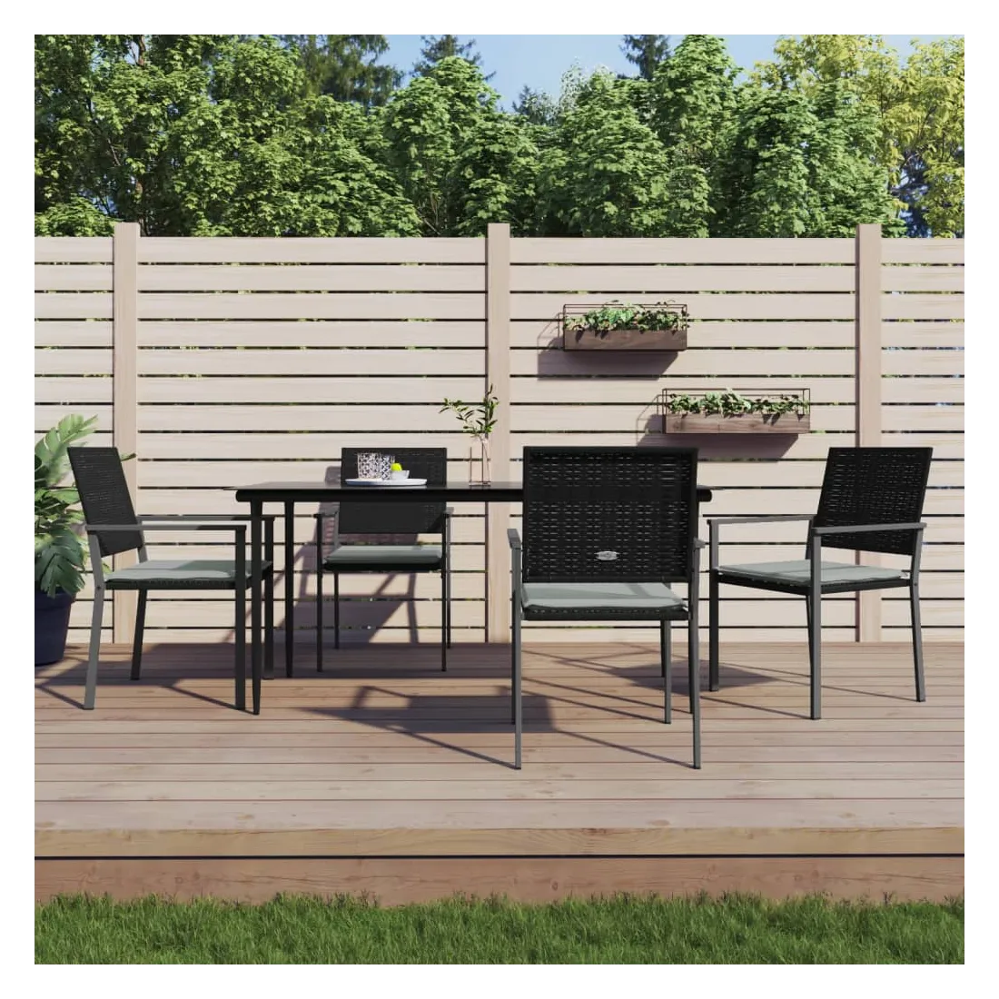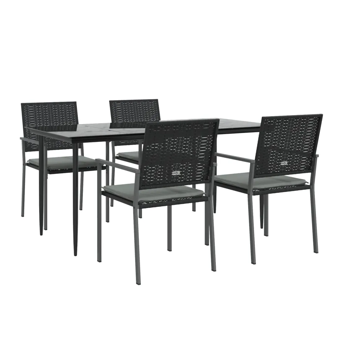 Cet ensemble à manger de jardin, combinant à la fois style et fonctionnalité, est sûrement destiné à être la pièce maîtresse de votre jardin, terrasse et de tout autre espace de vie. Matériau résistant aux intempéries : la résine tressée, également connue sous le nom de rotin poly, résiste aux intempéries et est facile à nettoyer. Elle reste belle à l'extérieur pendant une longue période. Elle offre une excellente qualité, commodité et un aspect esthétique.Cadre robuste et stable : les cadres en acier rendent l'ensemble à manger robuste et stable pour une utilisation quotidienne à l'extérieur.Dessus de table pratique : le plateau lisse de la table à manger est en verre trempé facile à nettoyer avec un chiffon humide. De plus, il offre un excellent support pour contenir vos repas, boissons et autres objets décoratifs.Assise confortable : la chaise de salle à manger est conçue avec des accoudoirs pour vous offrir une expérience d'assise confortable. Le coussin de siège épais et rembourré offre un confort ultime pendant votre temps d'assise. Remarque :Pour que vos meubles d'extérieur restent beaux, nous vous recommandons de les protéger avec une housse imperméable.