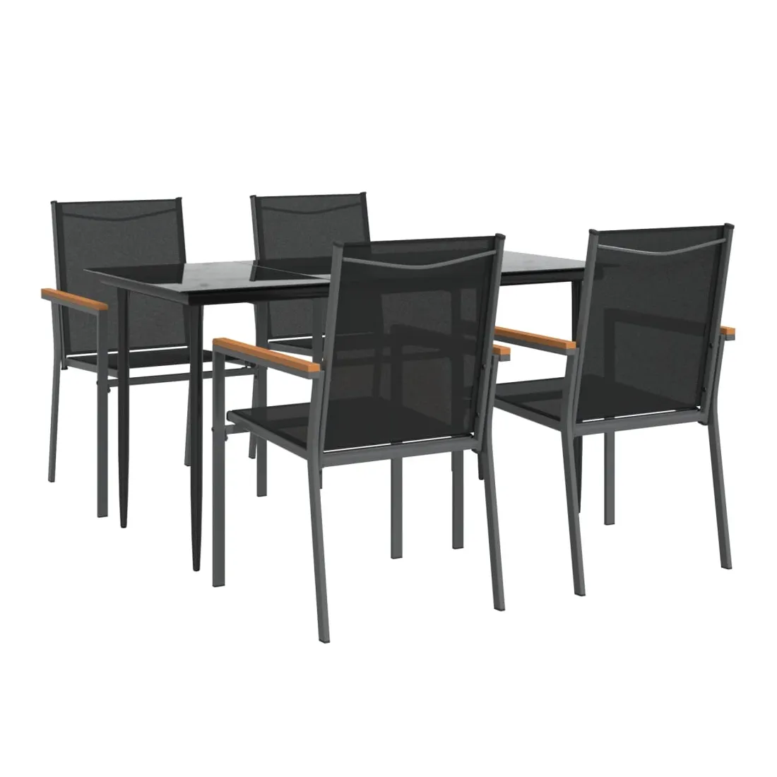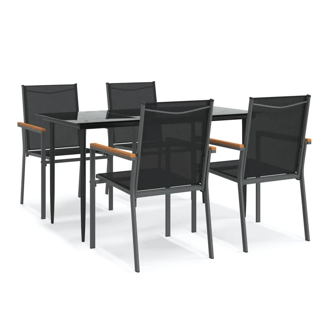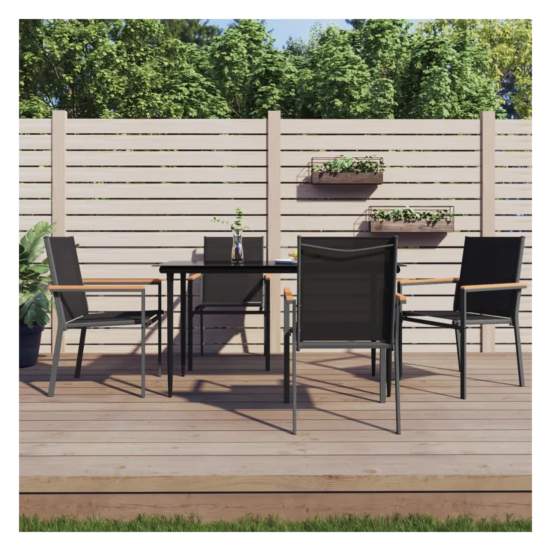 Détendez-vous et profitez d'un bon thé de l'après-midi ou de n'importe quel repas avec votre famille et vos amis autour de cet ensemble de salle à manger de jardin ! Matériau durable : le tissu en textilène permet à l'air de circuler librement à travers lui tout en étant résistant aux rayons UV. Le textilène est donc idéal pour les temps chauds. En tant que matériau durable et solide, il est très résistant aux déchirures, aux perforations et aux moisissures.Cadre robuste et stable : les cadres en acier rendent l'ensemble à manger robuste et stable pour une utilisation quotidienne à l'extérieur.Dessus de table pratique : le plateau lisse de la table à manger est en verre trempé facile à nettoyer avec un chiffon humide. De plus, il offre un excellent support pour contenir vos repas, boissons et autres objets décoratifs.Assise confortable : la chaise à manger est conçue avec un dossier et des accoudoirs pour vous offrir une expérience d'assise confortable. Remarque :Pour que vos meubles d'extérieur restent beaux, nous vous recommandons de les protéger avec une housse imperméable.