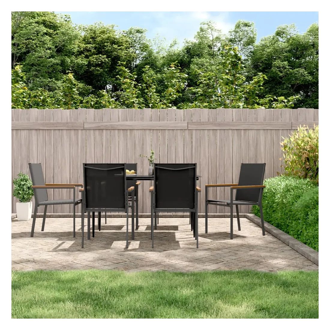 Détendez-vous et profitez d'un bon thé de l'après-midi ou de n'importe quel repas avec votre famille et vos amis autour de cet ensemble de salle à manger de jardin ! Matériau durable : le tissu en textilène permet à l'air de circuler librement à travers lui tout en étant résistant aux rayons UV. Le textilène est donc idéal pour les temps chauds. En tant que matériau durable et solide, il est très résistant aux déchirures, aux perforations et aux moisissures.Cadre robuste et stable : les cadres en acier rendent l'ensemble à manger robuste et stable pour une utilisation quotidienne à l'extérieur.Dessus de table pratique : le plateau lisse de la table à manger est en verre trempé facile à nettoyer avec un chiffon humide. De plus, il offre un excellent support pour contenir vos repas, boissons et autres objets décoratifs.Assise confortable : la chaise à manger est conçue avec un dossier et des accoudoirs pour vous offrir une expérience d'assise confortable. Remarque :Pour que vos meubles d'extérieur restent beaux, nous vous recommandons de les protéger avec une housse imperméable.