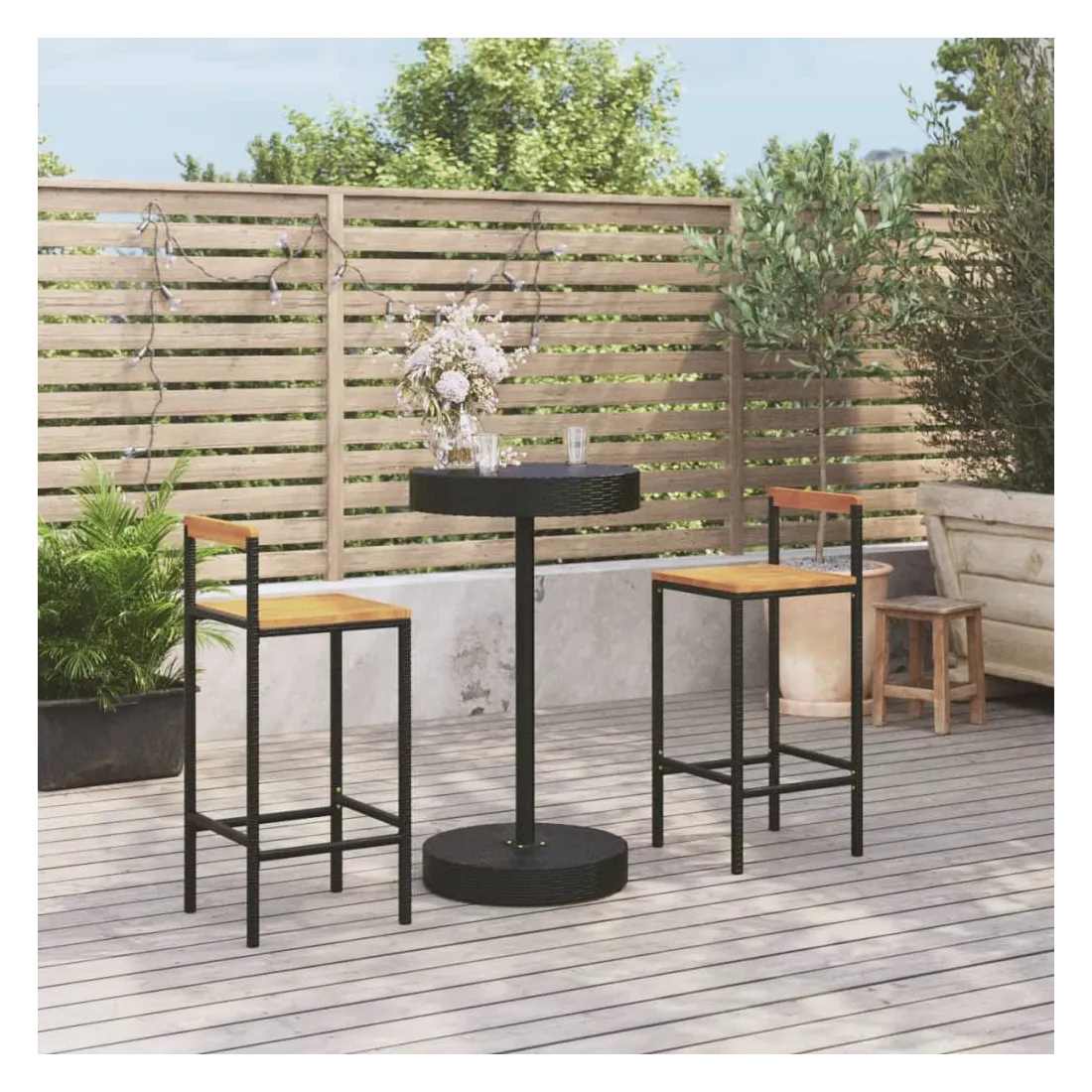 Cet ensemble de bar de jardin tendance, combinant à la fois style et fonctionnalité, est sûrement destiné à être la pièce maîtresse de votre jardin, terrasse et de tout autre espace de vie. Matériau résistant aux intempéries : la résine tressée, également connue sous le nom de rotin poly, résiste aux intempéries et est facile à nettoyer. Elle reste belle à l'extérieur pendant une longue période. Elle offre une excellente qualité, commodité et un aspect esthétique.Assise confortable : le tabouret de bar est conçu avec un repose-pied intégré pour vous offrir une expérience d'assise confortable. L'assise en bois confère au tabouret un aspect naturel et agréable tout en assurant sa stabilité.Table pratique : la table de bar ronde est idéale pour accueillir vos boissons, vos snacks et vos décorations préférées.Cadre robuste et stable : les cadres en acier enduit de poudre rendent l'ensemble de pub robuste et stable pour une utilisation quotidienne à l'extérieur.Applications larges : la table et les tabourets de bar, avec leur design remarquable, créent un aspect général agréable qui s'intègre sans effort dans n'importe quel décor. Bon à savoir :Pour faciliter au maximum le montage, chaque produit est livré avec des instructions.Remarque :Pour que vos meubles d'extérieur restent beaux, nous vous recommandons de les protéger avec une housse imperméable.