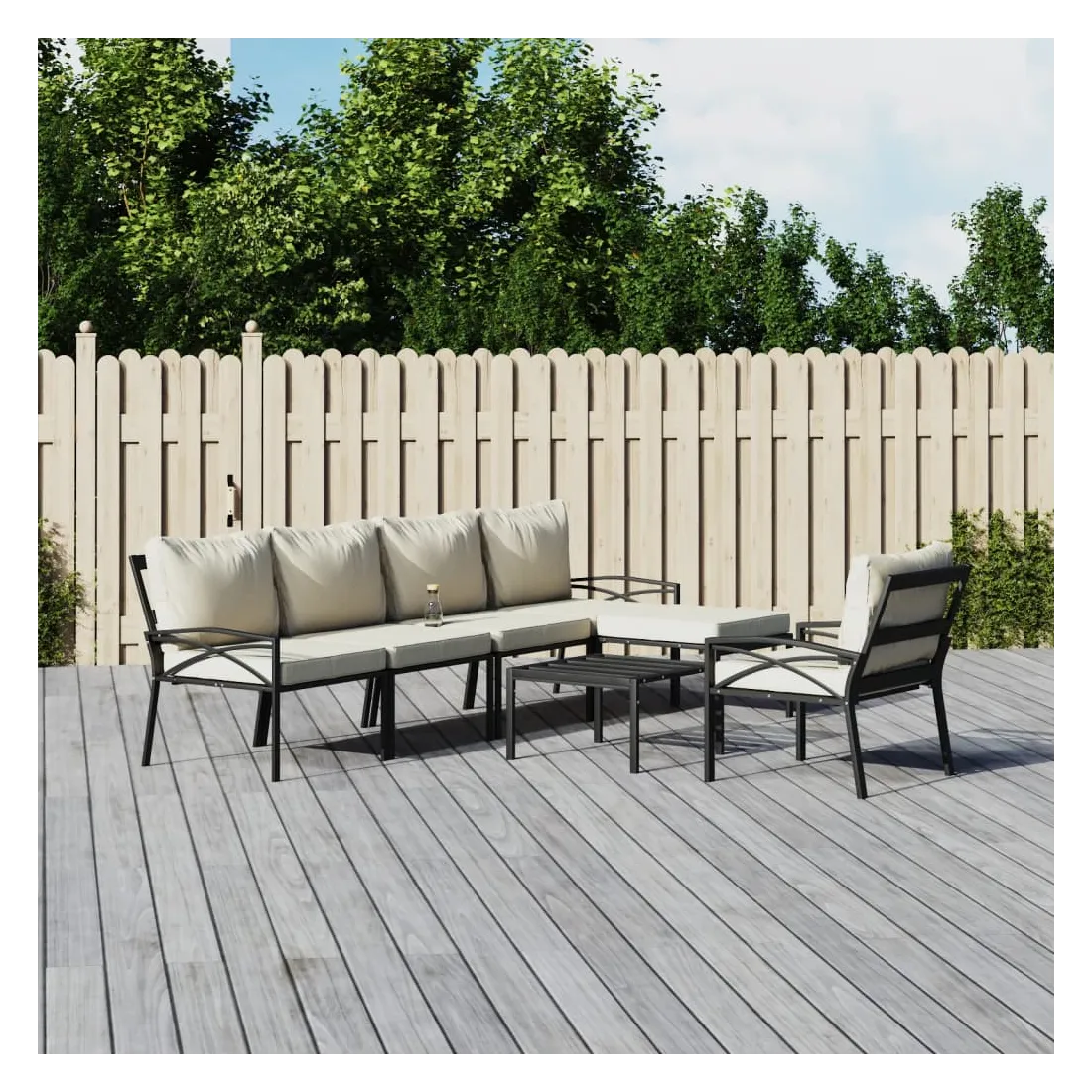 Profitez d'un moment de café confortable dans votre espace extérieur avec cet ensemble de salon de jardin ! C'est un complément parfait à votre jardin et à votre terrasse, créant une impression durable ! Matériau stable : l'acier est un matériau exceptionnellement dur et résistant. Il offre robustesse et stabilité. Le revêtement en poudre sur l'acier crée une couche protectrice contre l'usure.Coussins moelleux : les coussins épais et amovibles du salon de jardin sont inclus pour offrir le plus grand confort d'assise.Accoudoirs et dossier confortables : vos bras et votre dos peuvent se reposer confortablement grâce aux accoudoirs et au dossier.Dessus robuste : le dessus de table robuste de cette table de jardin vous offre de l'espace pour placer des collations, des paniers de fruits, des objets décoratifs, ainsi que divers autres articles essentiels. Bon à savoir :Pour faciliter au maximum le montage, chaque produit est livré avec des instructions. Remarque :Pour que vos meubles d'extérieur restent beaux, nous vous recommandons de les protéger avec une housse imperméable.