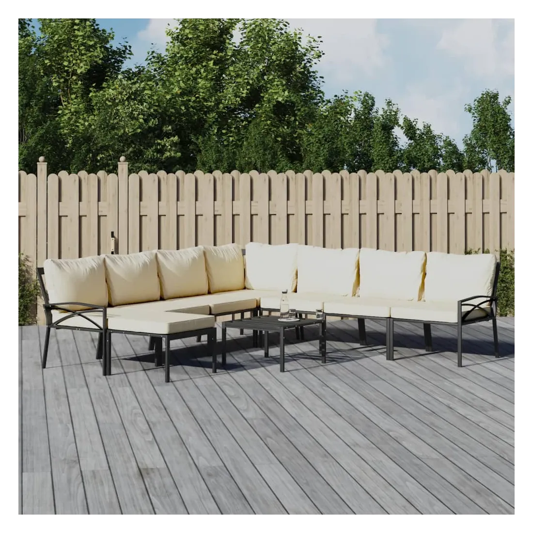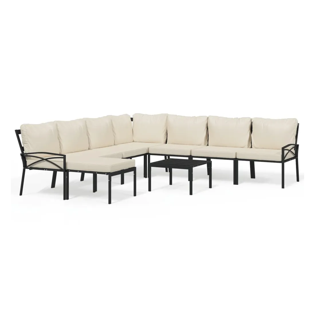 Salon de jardin 9 pcs avec coussins sable acier