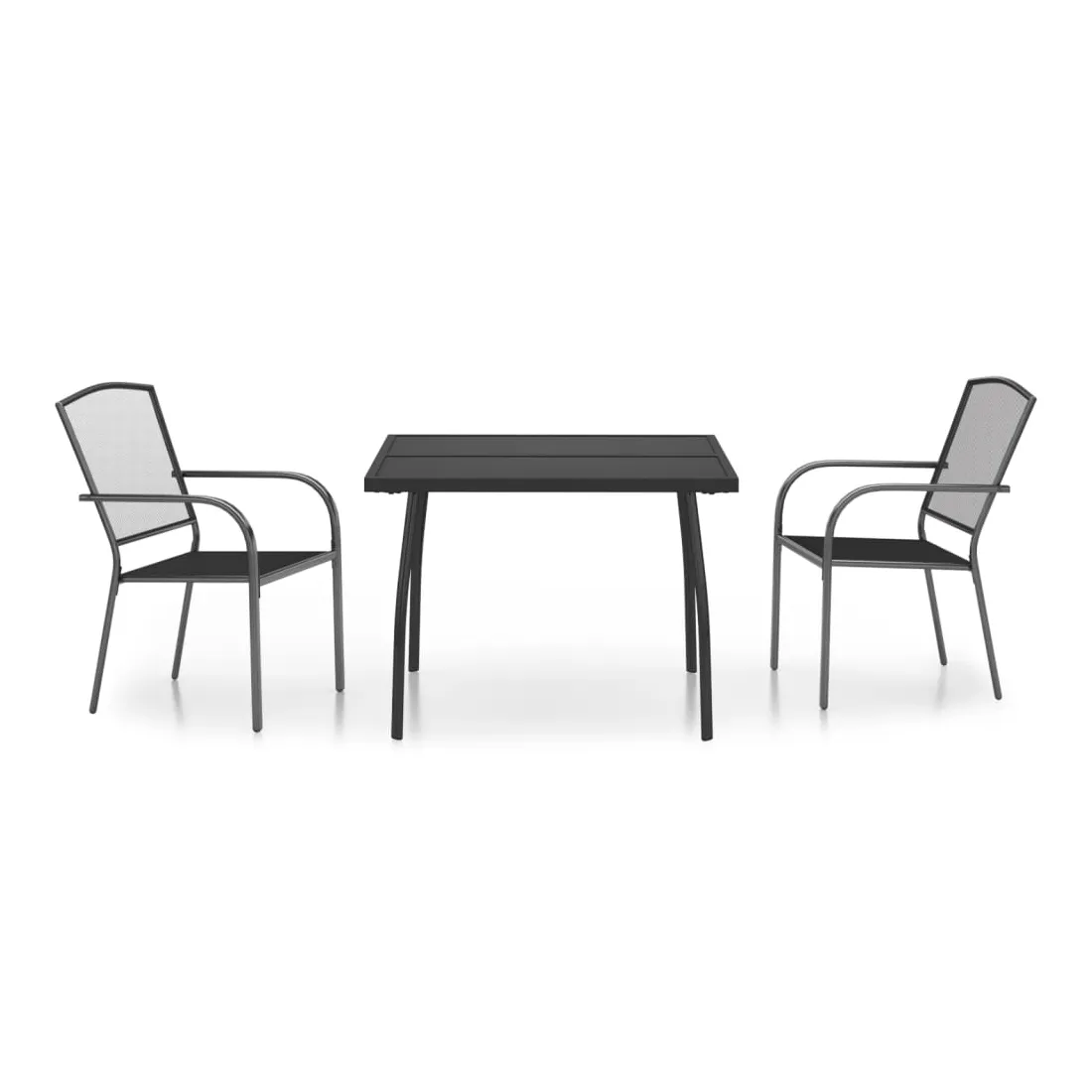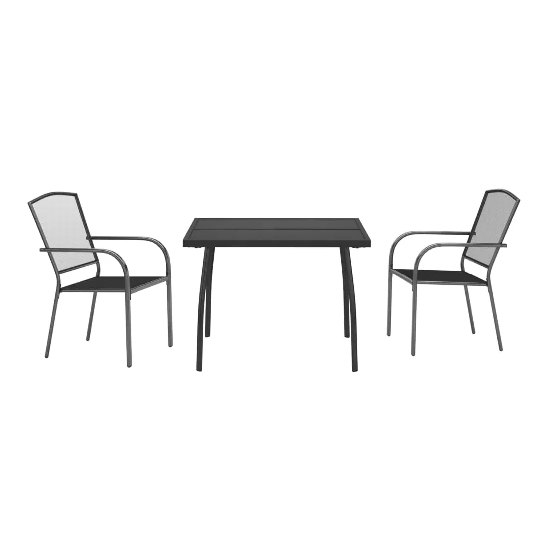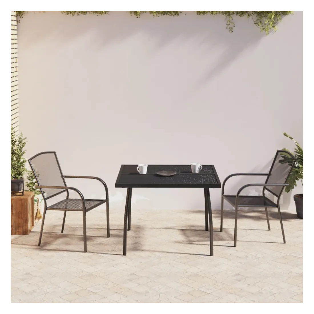 Cet ensemble de salle à manger de jardin tendance, au design élégant et contemporain, est un choix parfait pour vous détendre dans votre jardin. Matériau robuste : l'acier est un matériau exceptionnellement dur et solide. Il offre robustesse et stabilité. Le revêtement par poudre et le revêtement électronique de l'acier créent une couche protectrice contre l'usure et la corrosion.Cadre stable : le cadre en acier enduit de poudre et e-coated assure la robustesse et la stabilité de l'ensemble de salle à manger.Fonction empilable : les chaises de salle à manger sont empilables pour économiser de l'espace lorsqu'elles ne sont pas utilisées.Table pratique : le dessus robuste de la table à manger est parfait pour placer des repas, des boissons et d'autres objets décoratifs.Pieds élégants : les pieds incurvés de la table à manger de jardin créent un air d'élégance tout en assurant la stabilité.Design en maille : l'ensemble de salle à manger d'extérieur avec un design en maille a un aspect simple et intemporel et convient aux balcons, porches, jardins, terrasses, etc. Remarque :Pour que vos meubles d'extérieur restent beaux, nous vous recommandons de les protéger avec une housse imperméable.