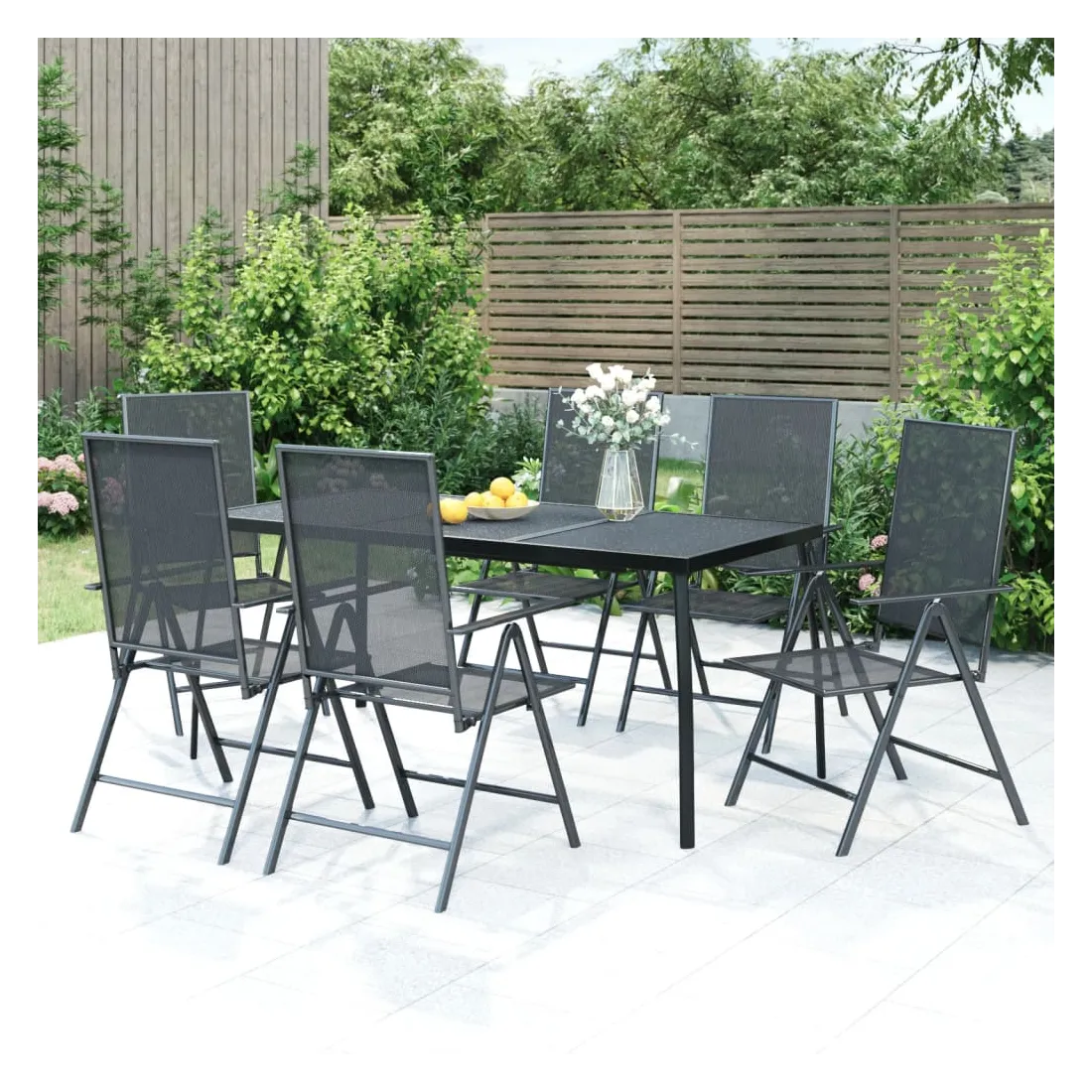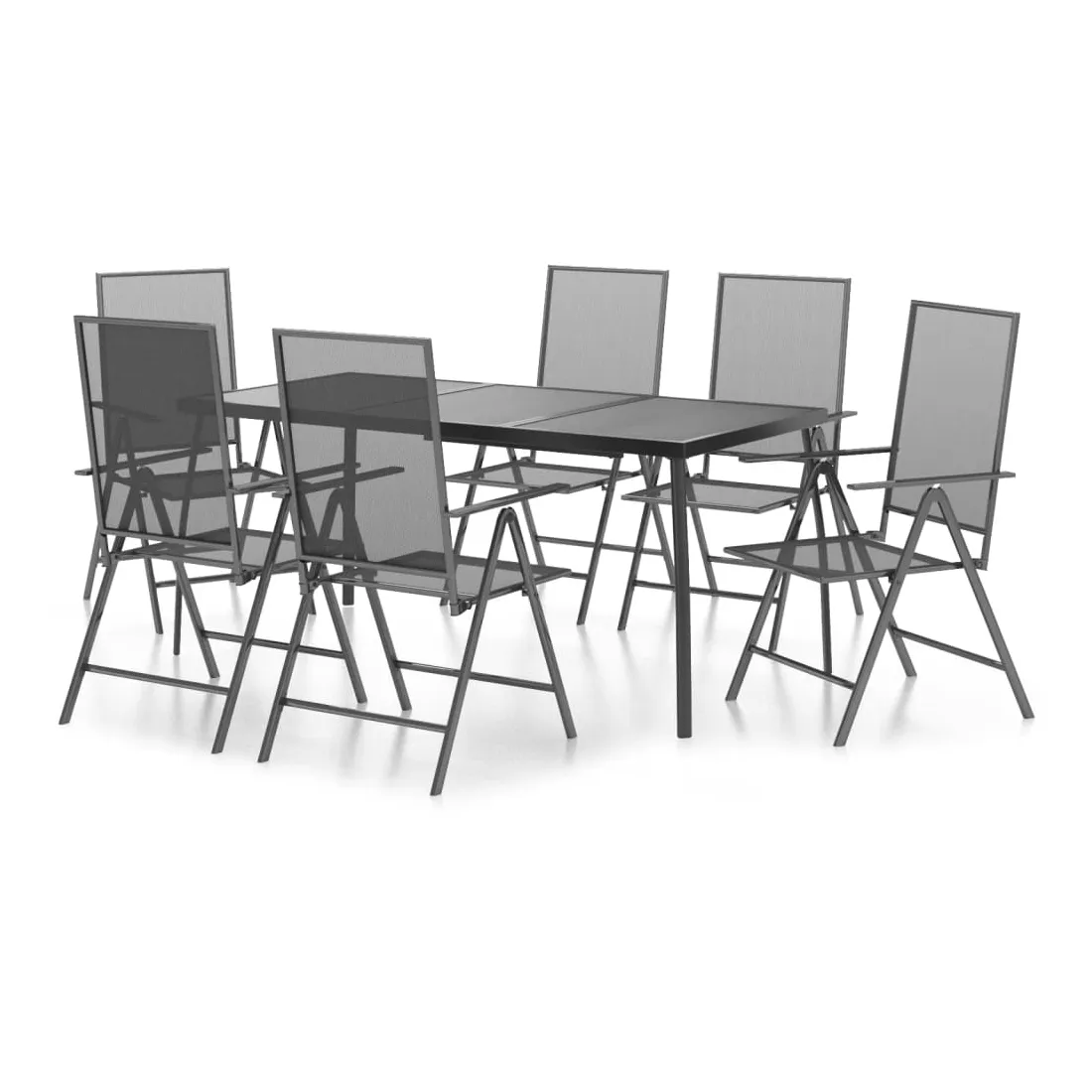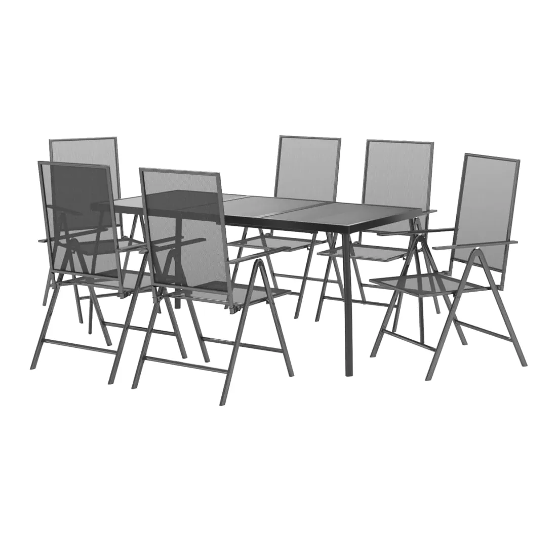 Cet ensemble de salle à manger de jardin tendance, au design élégant et contemporain, est un choix parfait pour vous détendre dans votre jardin. Matériau robuste : l'acier est un matériau exceptionnellement dur et solide. Il offre robustesse et stabilité. Le revêtement par poudre et le revêtement électronique de l'acier créent une couche protectrice contre l'usure et la corrosion.Cadre stable : le cadre en acier enduit de poudre et e-coated assure la robustesse et la stabilité de l'ensemble de salle à manger.Fonction réglable et pliable : les dossiers des chaises de salle à manger sont réglables en 6 positions selon votre confort. Vous pouvez les replier pour économiser de l'espace lorsqu'ils ne sont pas utilisés.Table pratique : le dessus robuste de la table à manger est parfait pour placer des repas, des boissons et d'autres objets décoratifs.Design en maille : l'ensemble de salle à manger d'extérieur avec un design en maille a un aspect simple et intemporel et convient aux balcons, porches, jardins, terrasses, etc. Remarque :Pour que vos meubles d'extérieur restent beaux, nous vous recommandons de les protéger avec une housse imperméable.