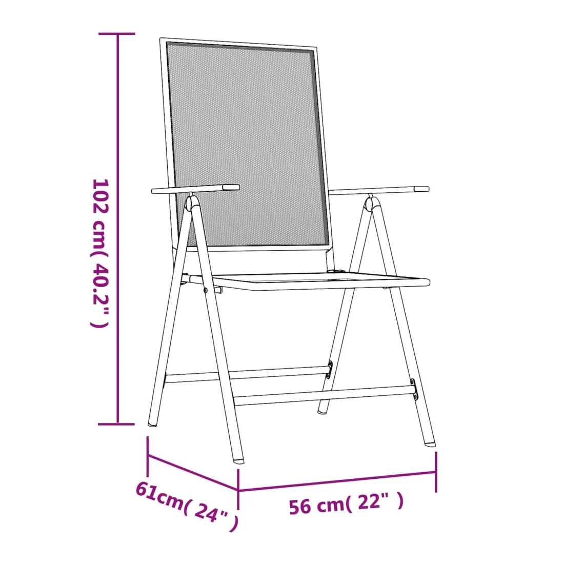 - Dimensions (dépliées) : 56 x (61-94) x (82-102) cm (l x P x H)