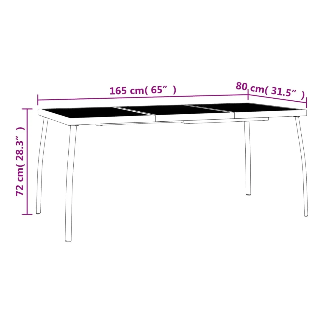 - Longueur de table 165 cm