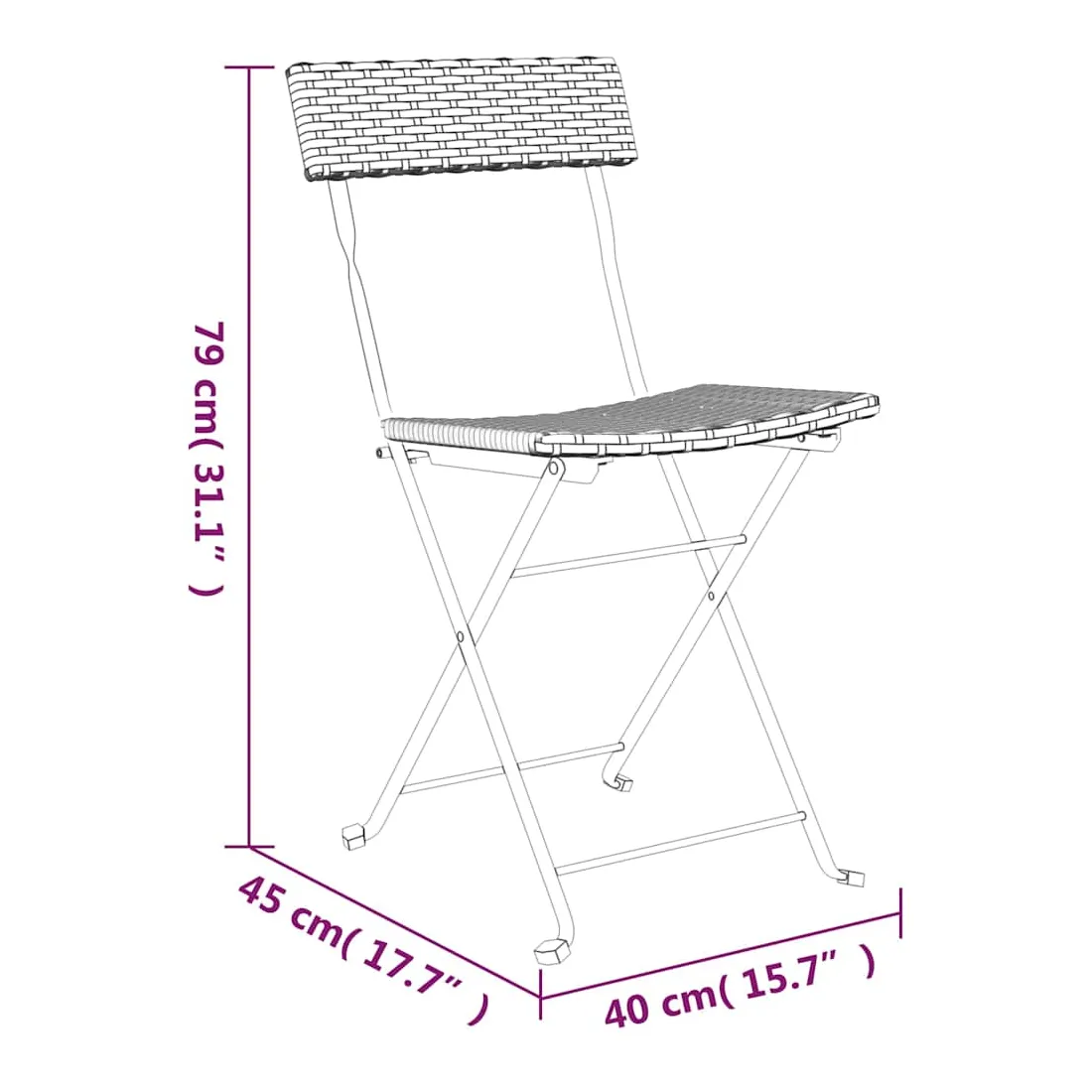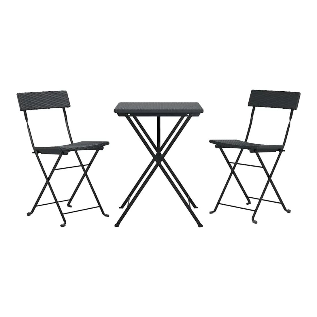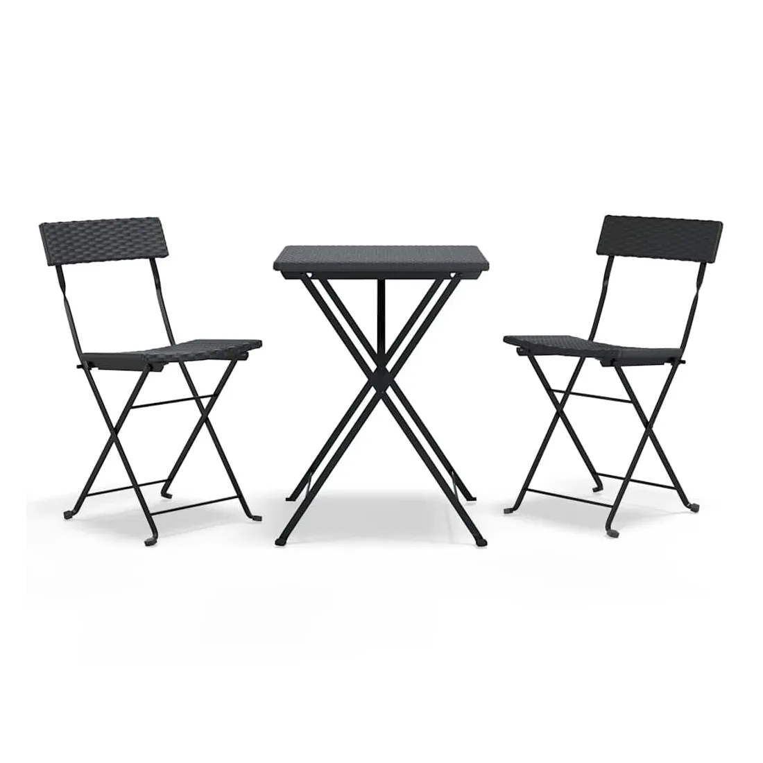 Cet ensemble bistro pliable de 3 pièces en résine tressée est un excellent choix pour manger ou vous détendre dans votre jardin, balcon ou sur patio. Matériau durable : la résine tressée, également connue sous le nom de rotin poly, résiste aux intempéries et est facile à nettoyer. Elle reste belle à l'extérieur pendant une longue période. Elle est plus économique que d'autres matériaux, tout en offrant une excellente qualité, une commodité et un aspect esthétique.Cadre stable : le cadre en acier enduit de poudre assure la robustesse et la stabilité.Design pliable : la table et les chaises peuvent être facilement repliées lorsqu'elles ne sont pas utilisées pour faciliter le rangement et le transport. Remarque :Afin de prolonger la durée de vie de votre mobilier d'extérieur, nous vous recommandons de le protéger avec une housse imperméable.Chaque produit est livré avec un manuel de montage dans la boîte pour un montage facile.