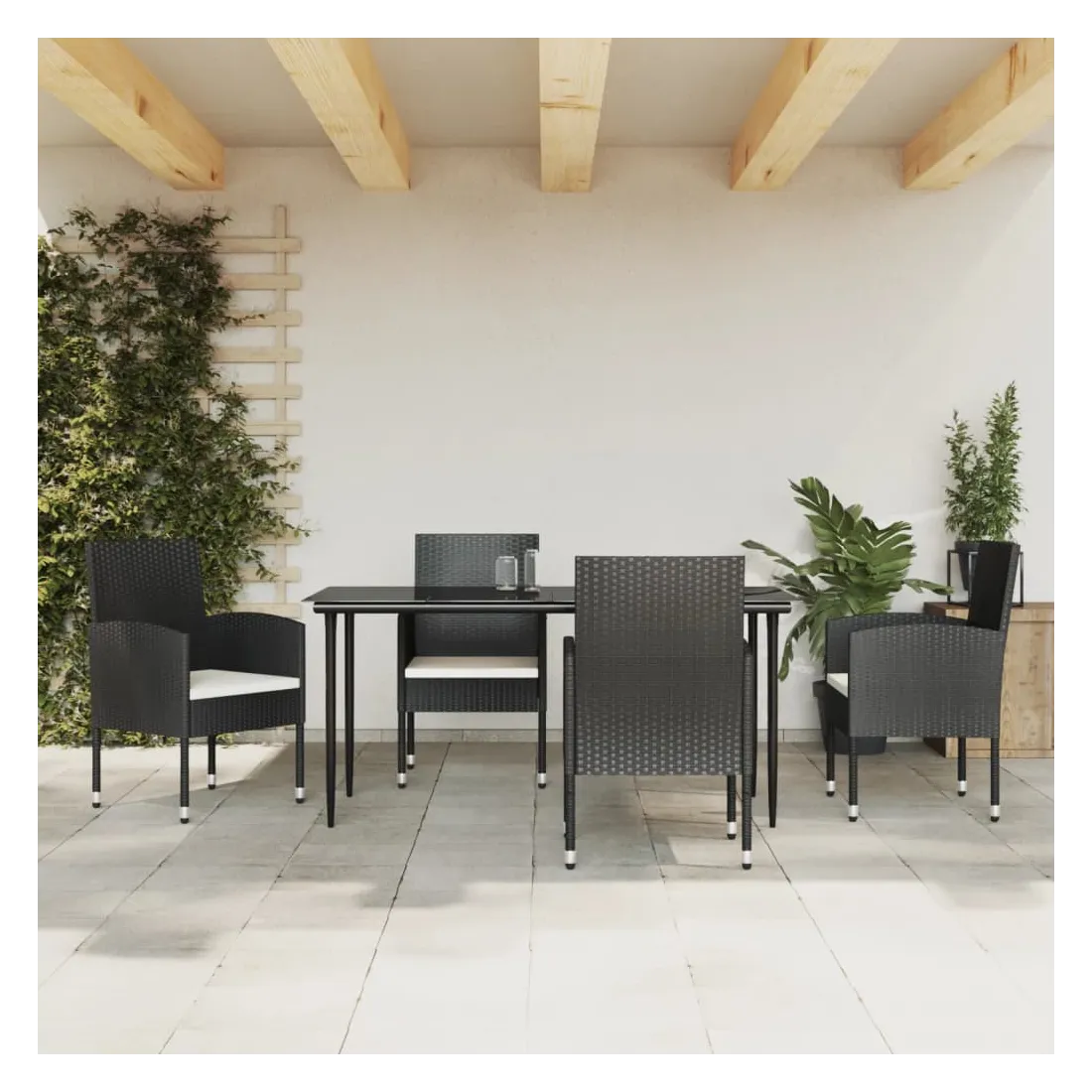 Profitez d'un bon repas ou d'un thé l'après-midi dans votre espace extérieur avec cet ensemble de salle à manger de jardin ! Ayant un design élégant, il deviendra le point central de votre jardin et de votre terrasse ! Matériau haut de gamme : la résine tressée est un matériau de résistance exceptionnelle et durable dans différentes conditions météorologiques.Cadre robuste : cette table et cette chaise de jardin sont construites avec un cadre en acier, ce qui assure robustesse et stabilité.Dessus de table pratique : le dessus lisse de la table à manger est en verre trempé, facile à nettoyer avec un chiffon humide. De plus, le dessus robuste est parfait pour placer des repas, des boissons et d'autres objets décoratifs.Expérience de siège confortable : les coussins de siège épais et amovibles sont inclus pour votre confort. Bon à savoir :Pour que vos meubles d'extérieur restent beaux, nous vous recommandons de les protéger avec une housse imperméable.