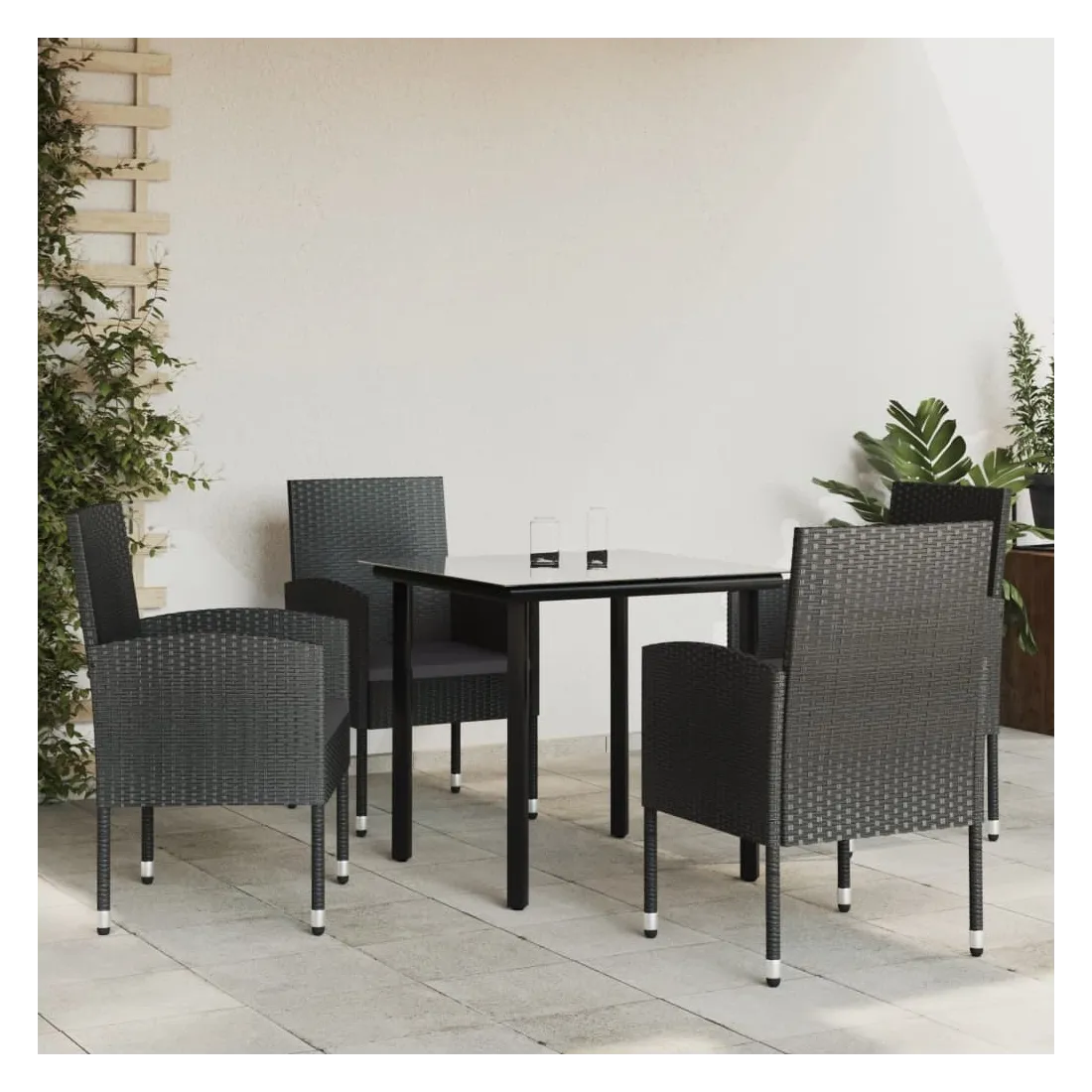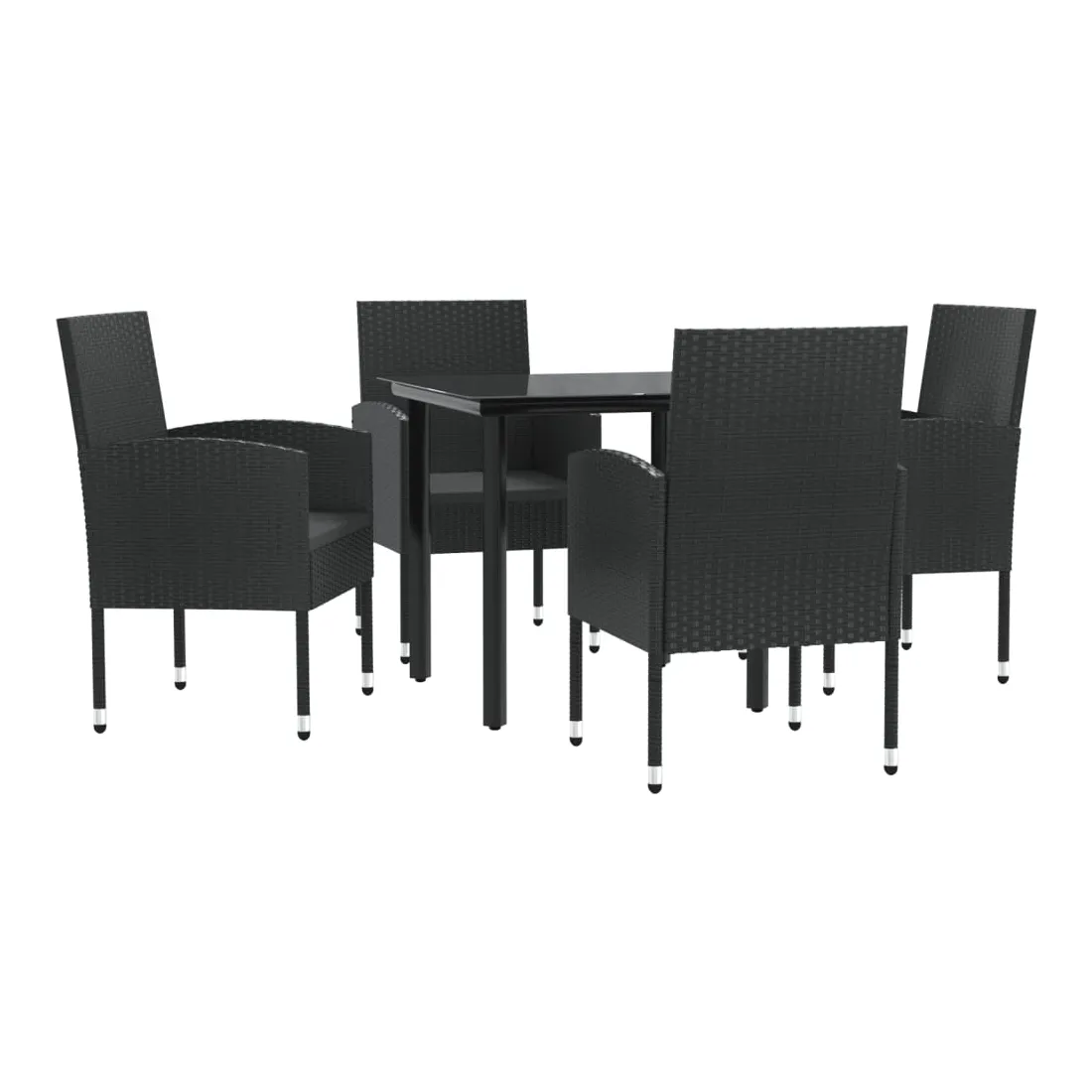 Ensemble à manger de jardin 5 pcs noir résine tressée et acier