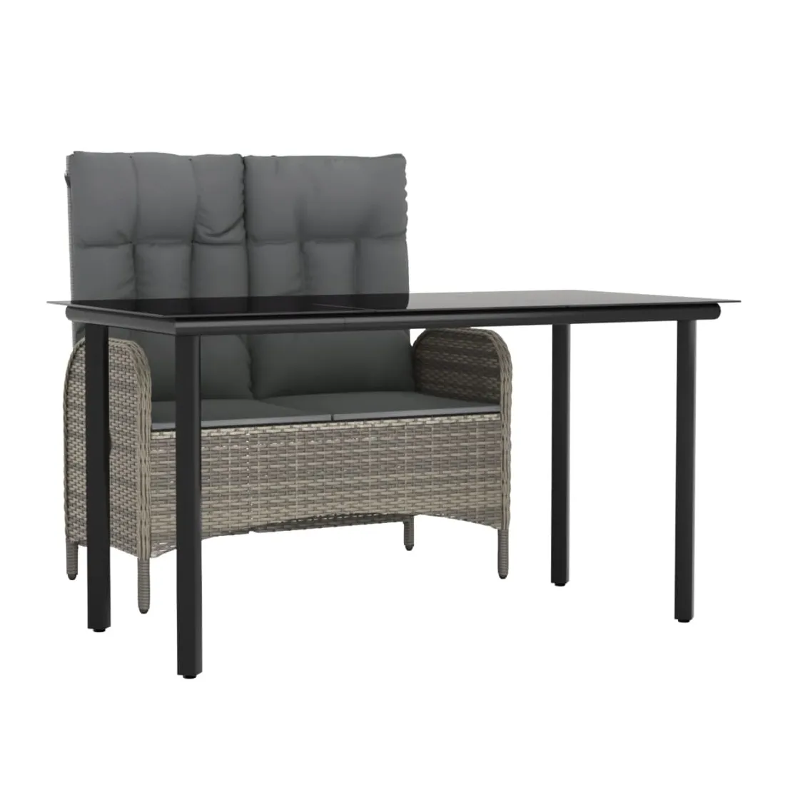 Profitez d'un bon repas ou d'un thé l'après-midi dans votre espace extérieur avec cet ensemble de salle à manger de jardin ! Ayant un design élégant, il deviendra le point central de votre jardin et de votre terrasse ! Matériau haut de gamme : la résine tressée est un matériau de résistance exceptionnelle et durable dans différentes conditions météorologiques.Table pratique : le dessus de table lisse est fabriqué en verre trempé qui est facile à nettoyer avec un chiffon humide. De plus, le dessus de table robuste est parfait pour placer des repas, des boissons et d'autres objets décoratifs.Fonction d'inclinaison : le banc d'extérieur est spécialement conçu avec une fonction d'inclinaison afin que vous puissiez régler le dossier selon votre confort.Expérience d'assise confortable : des coussins supplémentaires sont inclus pour votre confort. Le coussin d'assise et le coussin de dossier peuvent être reliés par une fermeture éclair pour plus de commodité. Bon à savoir :Pour que vos meubles d'extérieur restent beaux, nous vous recommandons de les protéger avec une housse imperméable.