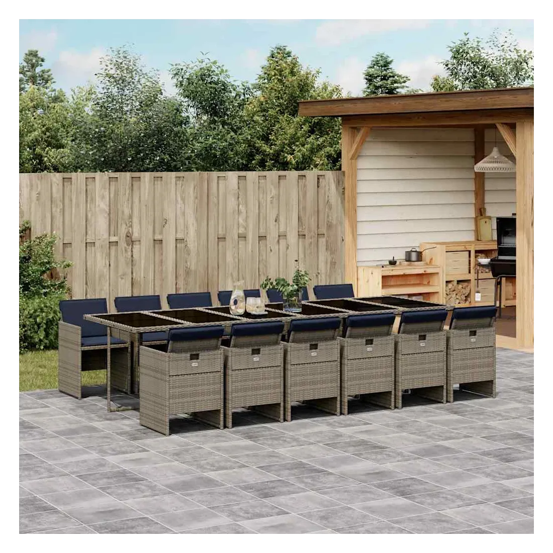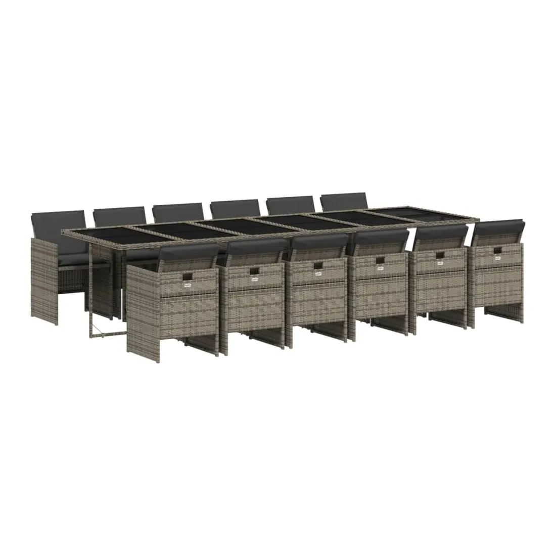Ensemble à manger de jardin coussins 13 pcs gris résine tressée