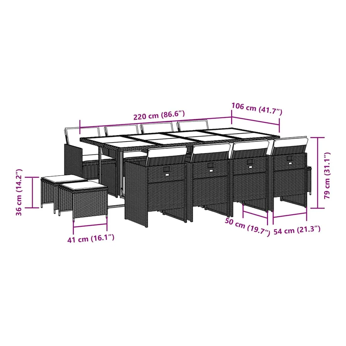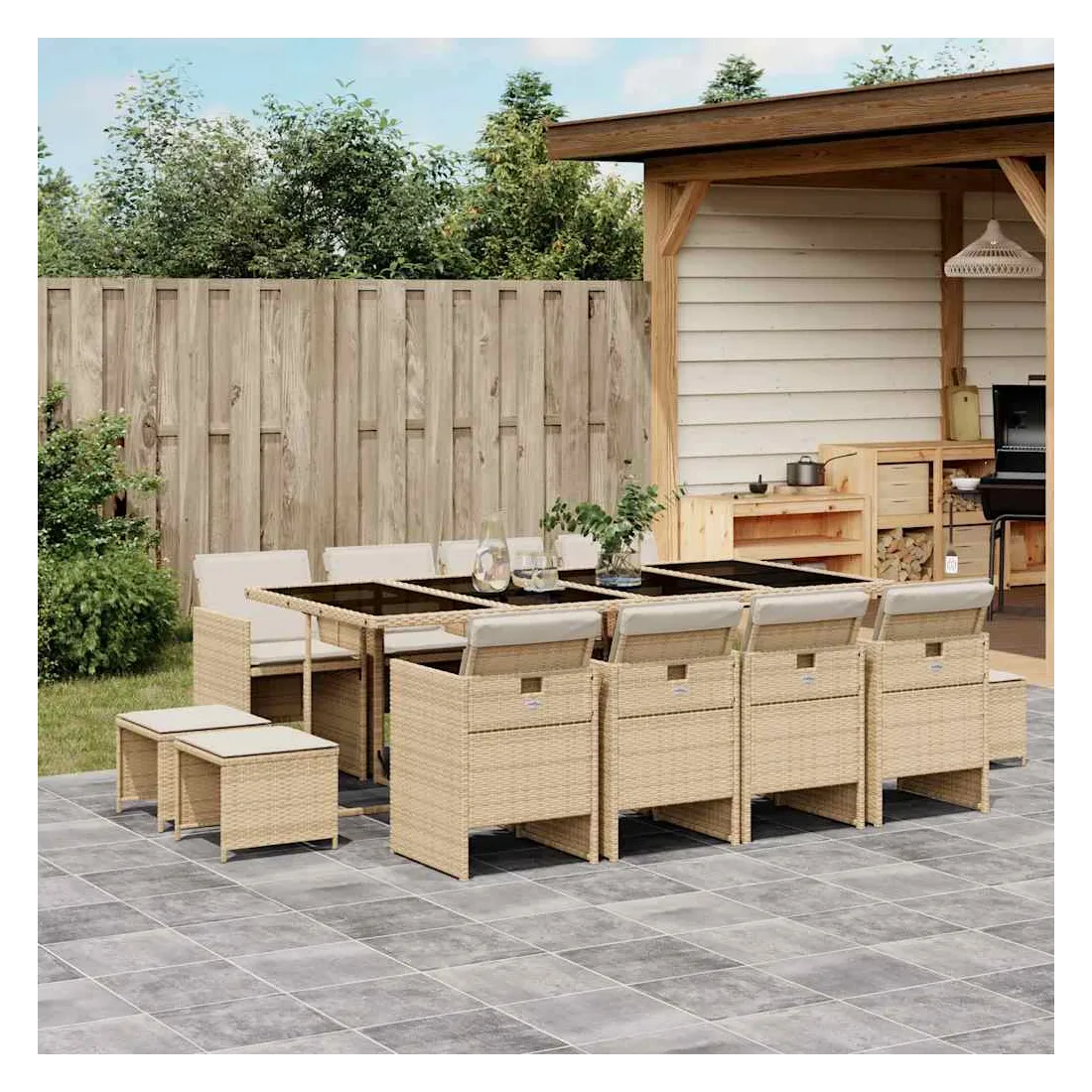 Cet ensemble de salle à manger de jardin est un excellent choix pour les repas en plein air ou pour vous détendre dans le jardin, dans l'arrière-cour ou sur la terrasse. Matériau durable : la résine tressée, également connue sous le nom de poly rotin, est un matériau synthétique solide et nécessitant peu d'entretien qui ressemble au rotin naturel. Il est léger, facile à nettoyer et couramment utilisé pour les meubles d'extérieur en raison de sa durabilité et de ses propriétés de résistance aux intempéries.Rangement compact : ces chaises sont dotées d'un dossier rabattable, ce qui permet de les ranger facilement sous la table. Une fois pliées, elles se rangent parfaitement sous la table, formant un cube peu encombrant. De plus, les tabourets peuvent également être rangés sous les chaises, maximisant encore davantage l'efficacité de l'espace. Expérience d'assise confortable : ce mobilier d'extérieur, doté de coussins épais, offre une expérience d'assise confortable.Housse amovible et lavable : ces coussins de siège sont dotés de housses amovibles pour un lavage et un entretien faciles.Dessus en verre : le dessus de la table d'extérieur est fabriqué en verre trempé solide et durable, ce qui le rend facile à nettoyer avec un chiffon humide et ajoute une touche d'élégance à votre espace extérieur. Bon à savoir : Pour que vos meubles d'extérieur restent beaux, nous vous recommandons de les protéger avec une housse imperméable.