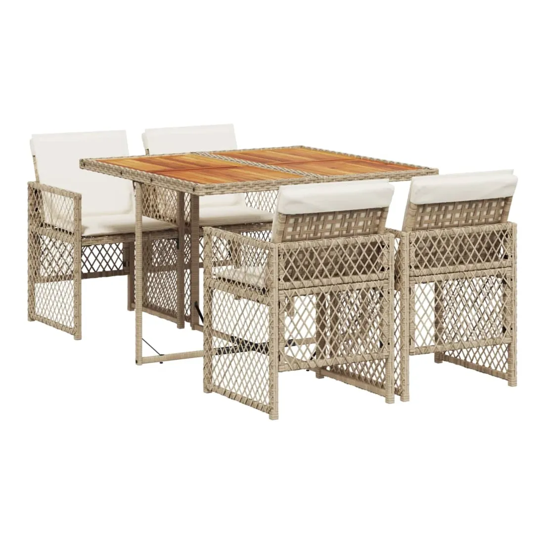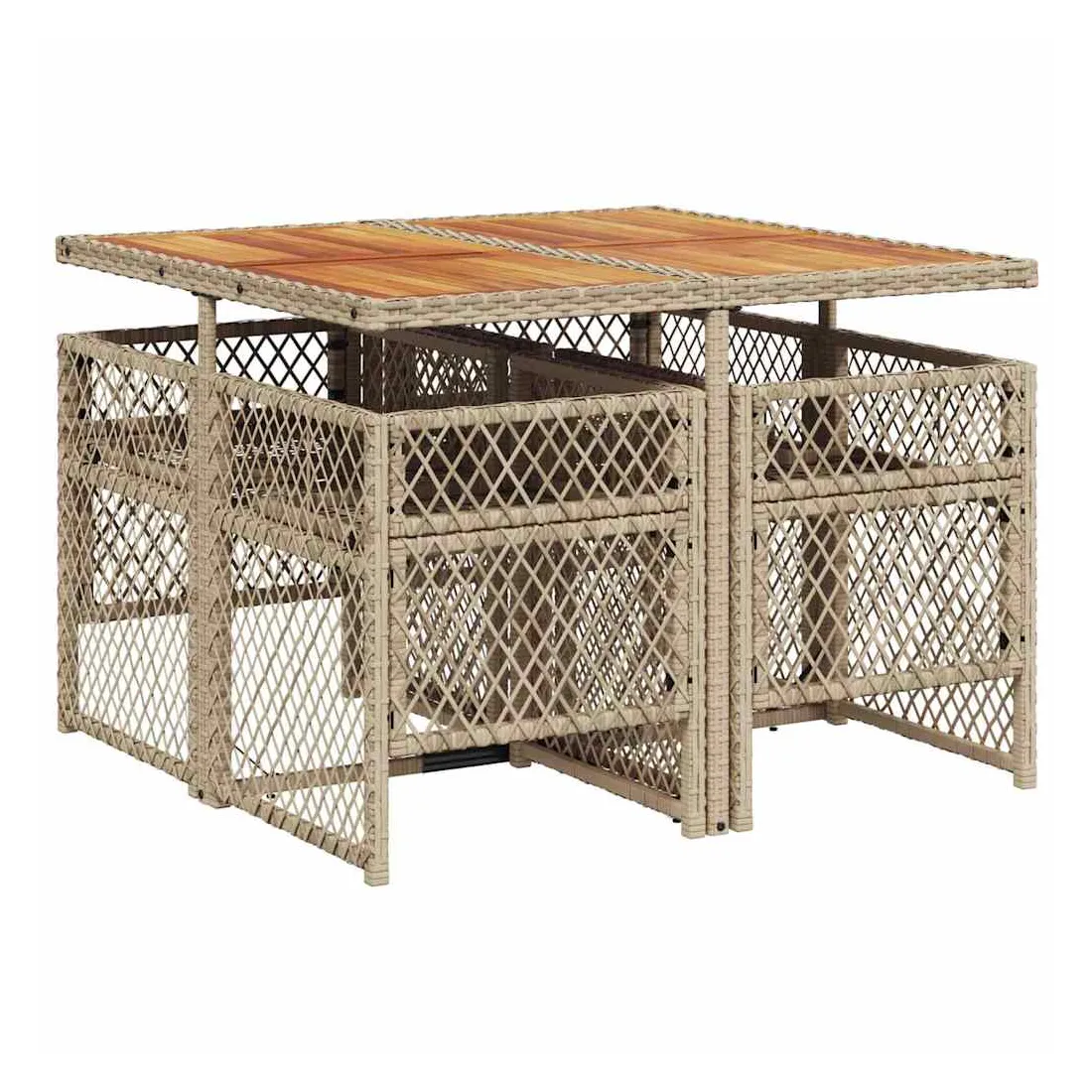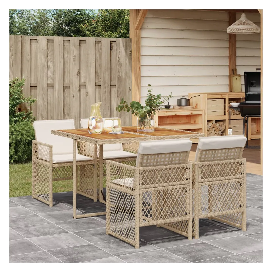 Cet ensemble de salle à manger de jardin est un excellent choix pour les repas en plein air ou pour vous détendre dans le jardin, l'arrière-cour ou le patio. Matériau durable : la résine tressée, également connue sous le nom de poly rotin, est un matériau synthétique solide et nécessitant peu d'entretien qui ressemble au rotin naturel. Elle est légère, facile à nettoyer et couramment utilisée pour les meubles d'extérieur en raison de sa durabilité et de ses propriétés de résistance aux intempéries. Dessus stable et facile à nettoyer : cette table de jardin a un dessus en bois d'acacia robuste, durable et facile à nettoyer avec un chiffon humide. Rangement compact : ces chaises sont dotées d'un dossier rabattable, ce qui permet de les ranger facilement sous la table. Une fois pliées, elles se rangent parfaitement sous la table, formant un cube peu encombrant. Expérience d'assise confortable : ce mobilier d'extérieur, doté de coussins épais, offre une expérience d'assise confortable. Housse amovible et lavable : ces coussins de siège sont dotés de housses amovibles pour un lavage et un entretien faciles. Les housses de coussin de chaise ont un rabat à l'arrière pour une fixation facile aux chaises. Bon à savoir :Pour que vos meubles d'extérieur restent beaux, nous vous recommandons de les protéger avec une housse imperméable.